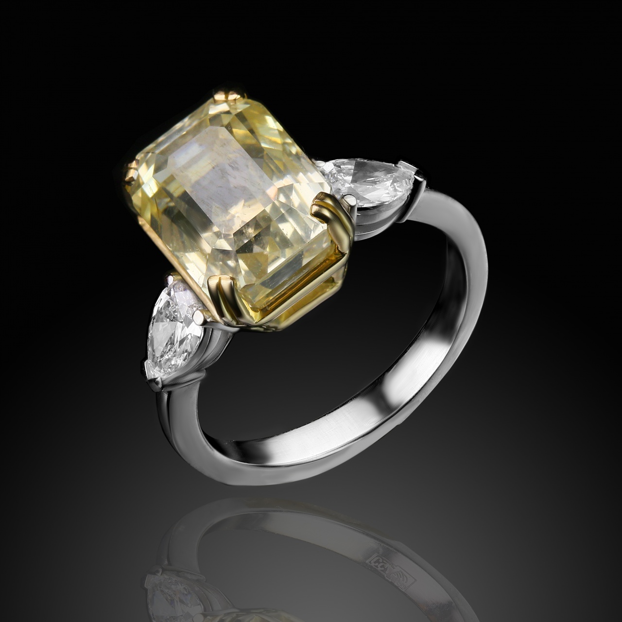 Кольцо из белого золота с желтым сапфиром 7,11 carat и бриллиантами (Сертификат GIA)