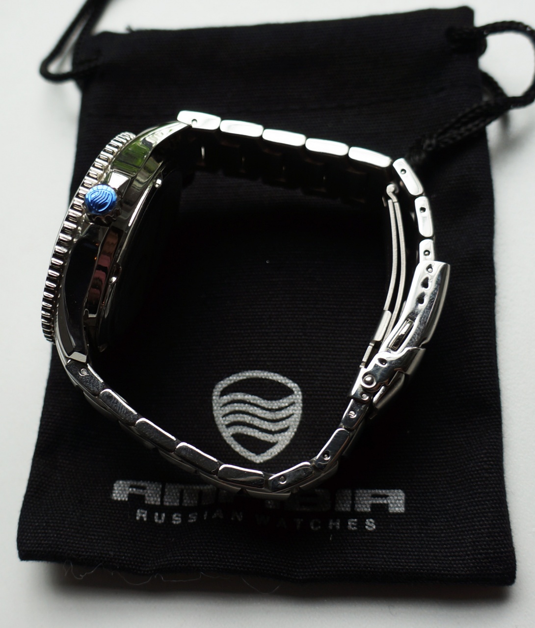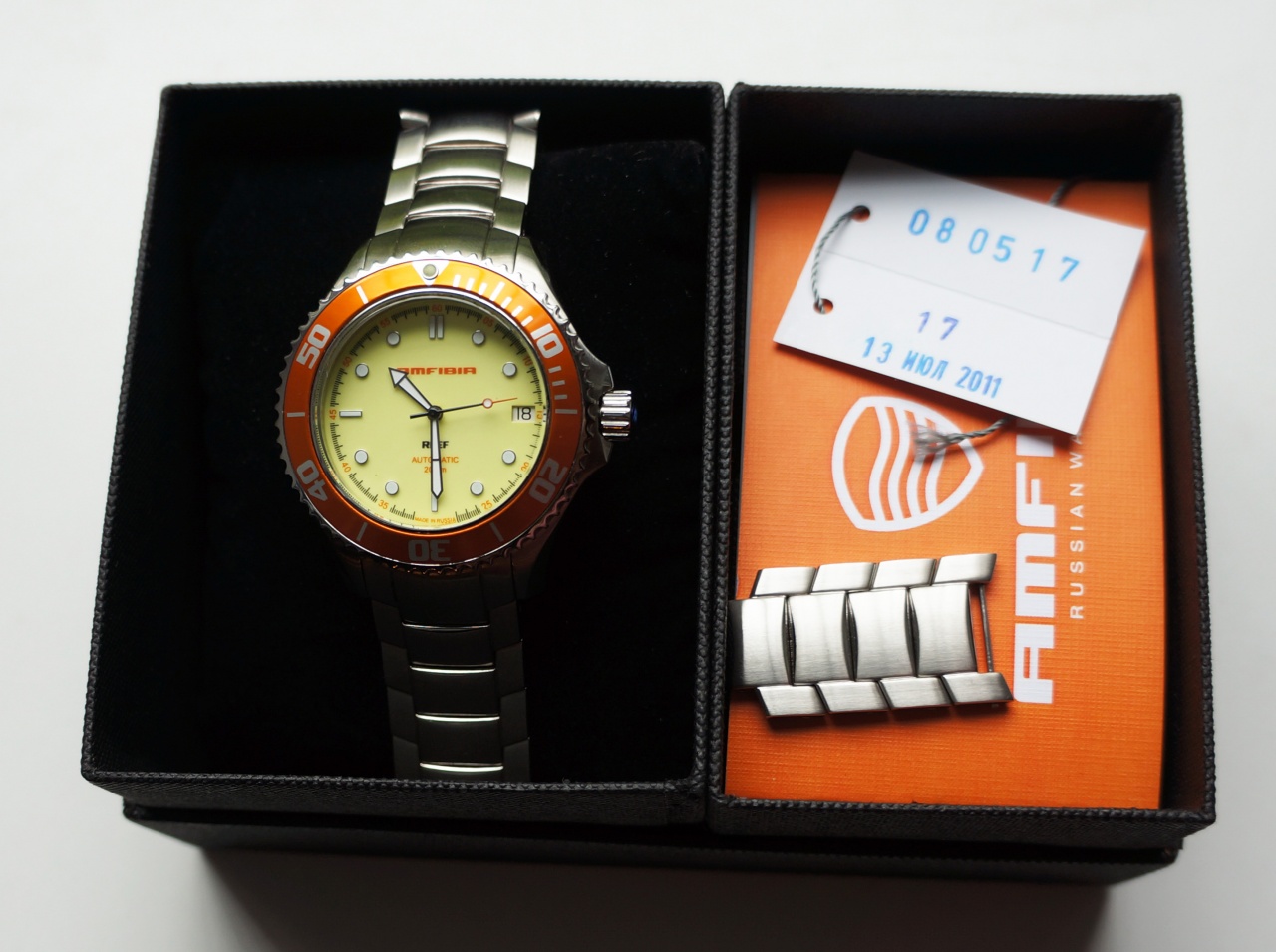 Полный комплект: коробка, инструкция, мешок для часов и дополнительные звенья. Ход точный, можно одевать и носить.