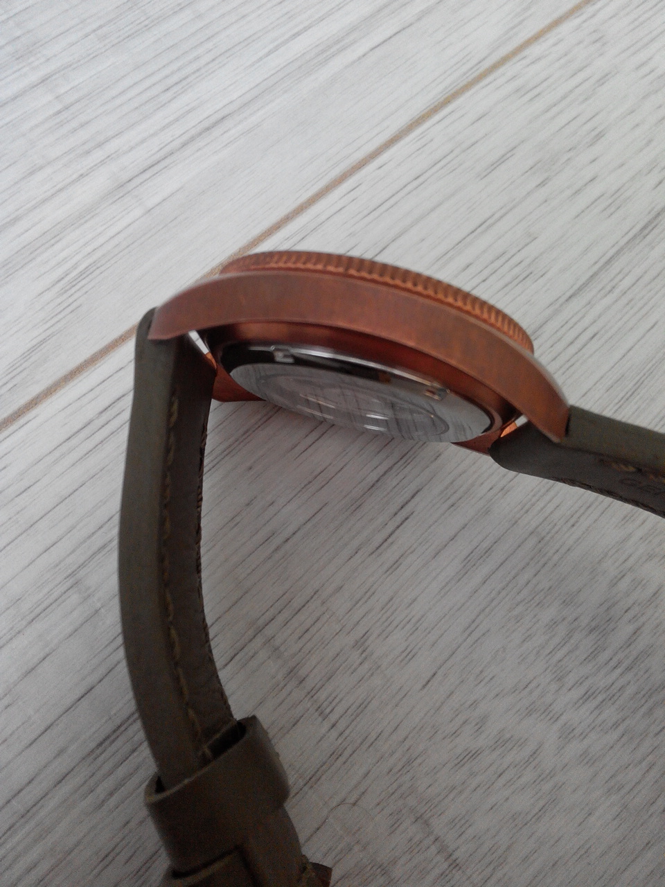 Часы на кожаном ремешке под цвет циферблата, новая БРОНЗОВАЯ бакля, еще без патины, т.к. новая