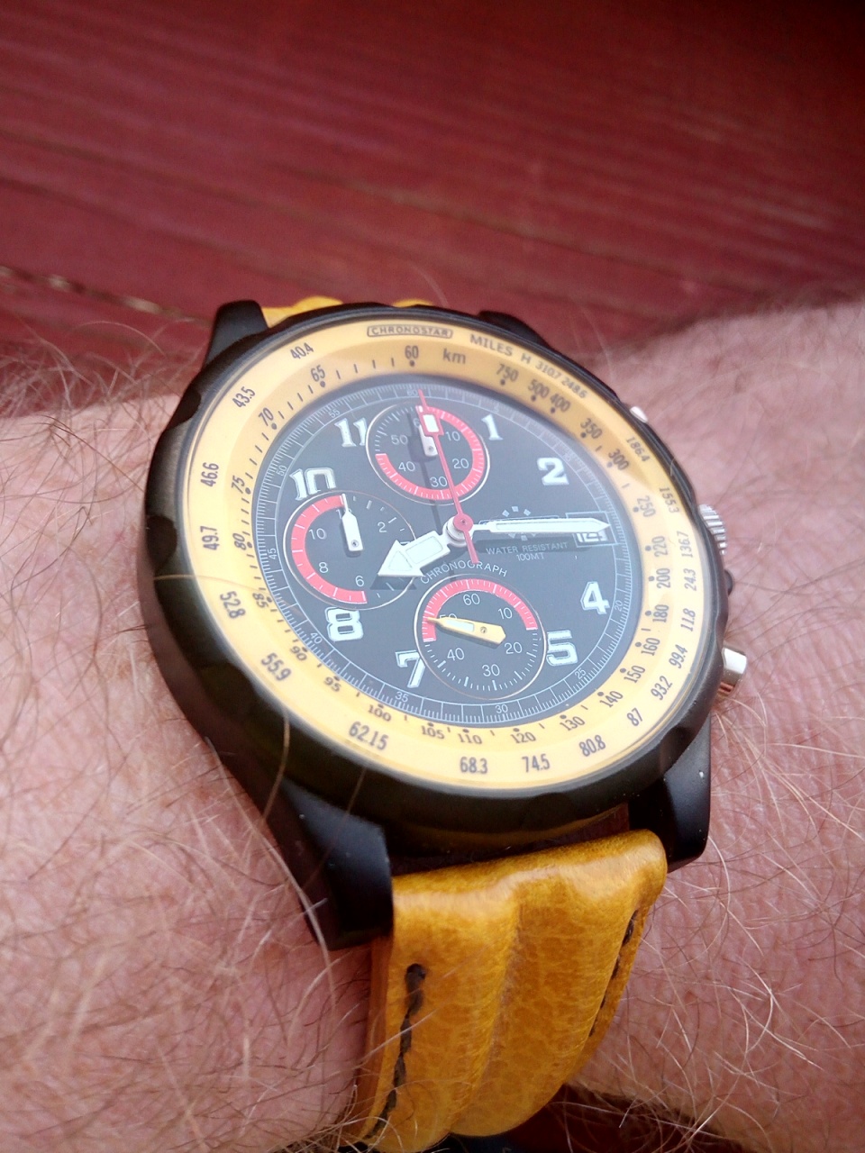 Циферблат: Черный глянцевый с красными акцентами на доп. шкалах.