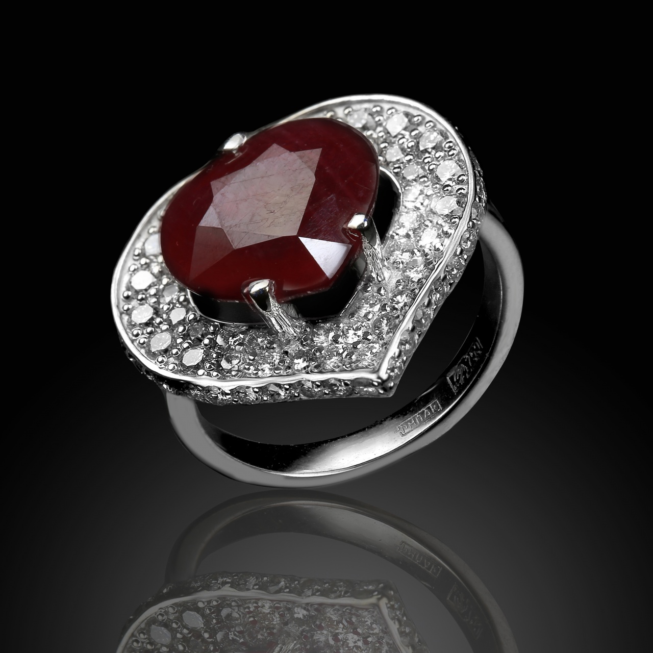 Кольцо из белого золота с рубином 5,49 карат и бриллиантами 1 карат