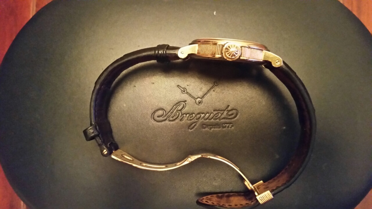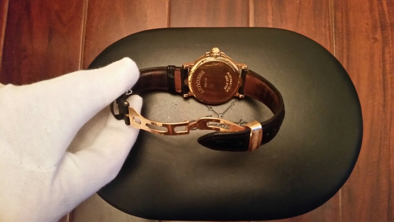 Циферблат выполнен из посеребренного золота с нанесенным вручную узором гильйоше.
