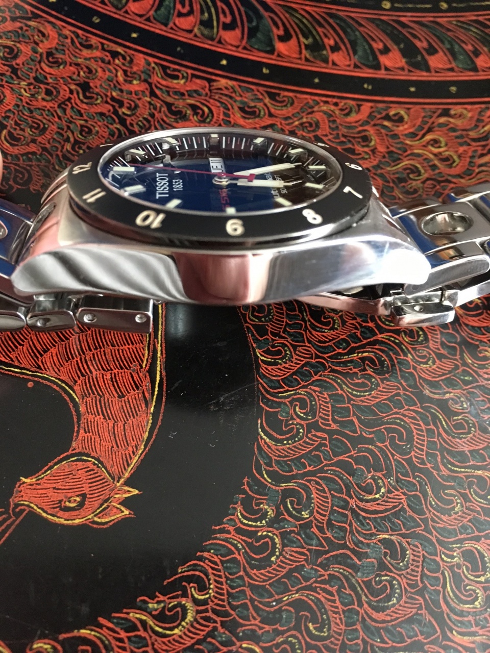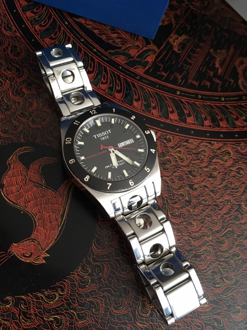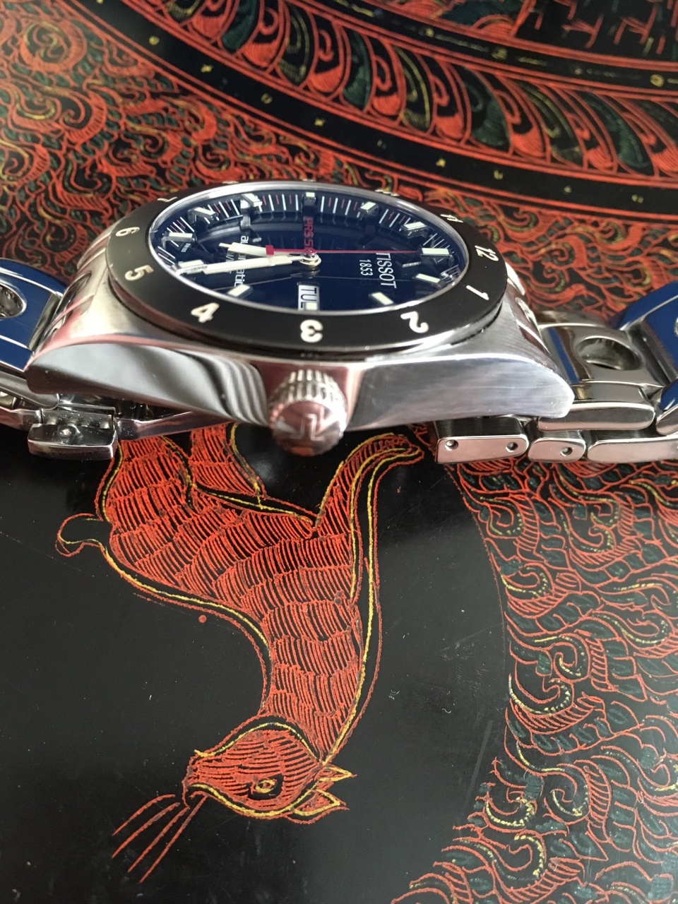 Хороший классический Тиссо на старом добром ЕТА2836. Идут +9, можно было легко выставить в 0, но лень, все равно давно не ношу. Владельцы более дорогих часов смотрят на позиционную разбежку и рыдают.