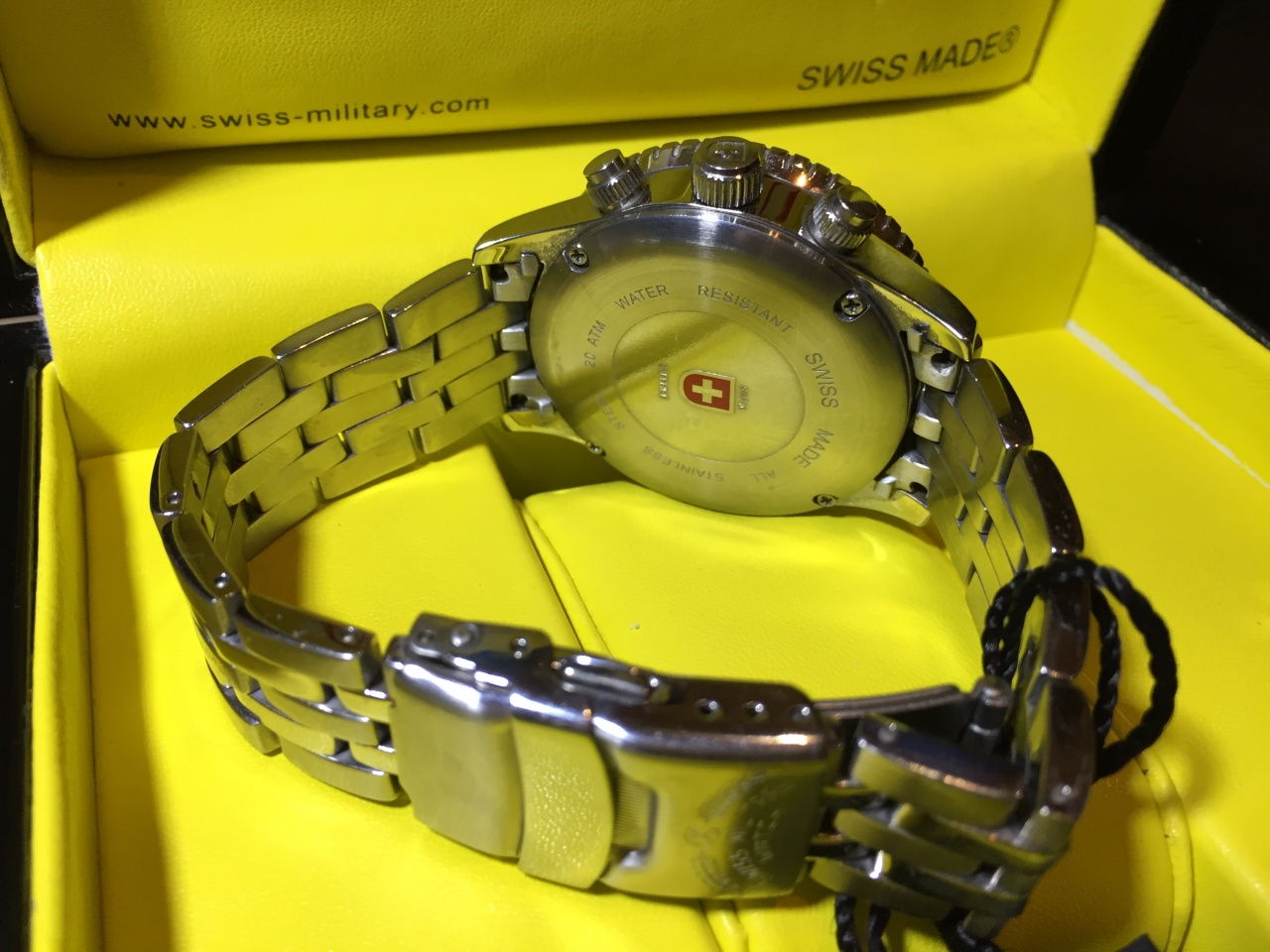 Хронограф, летный калькулятор (имеется отдельная инструкция), водозащита 200 м (20 атм), исключительно тонкая отделка циферблата. Красивая лакированная коробка, внешняя коробка, две инструкции, фирменная тряпочка-бархотка.