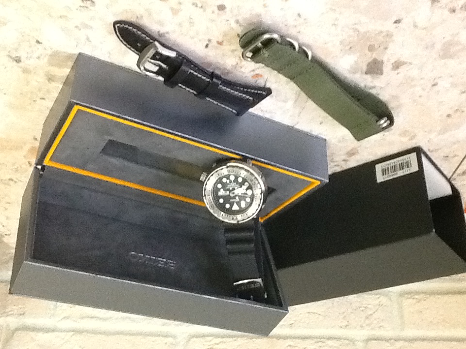 С комплектом отдам 2 ремешка: черный кожаный (кордован) и зеленый ZULU (5 колец). Сразу отвечу на несколько вопросов: секундная стрелка попадает в деление, купольный хардлекс как новый, часы прекрасно сидят на руке 17 см.
