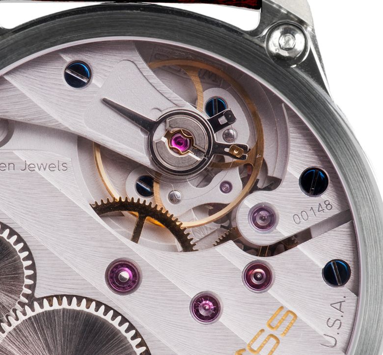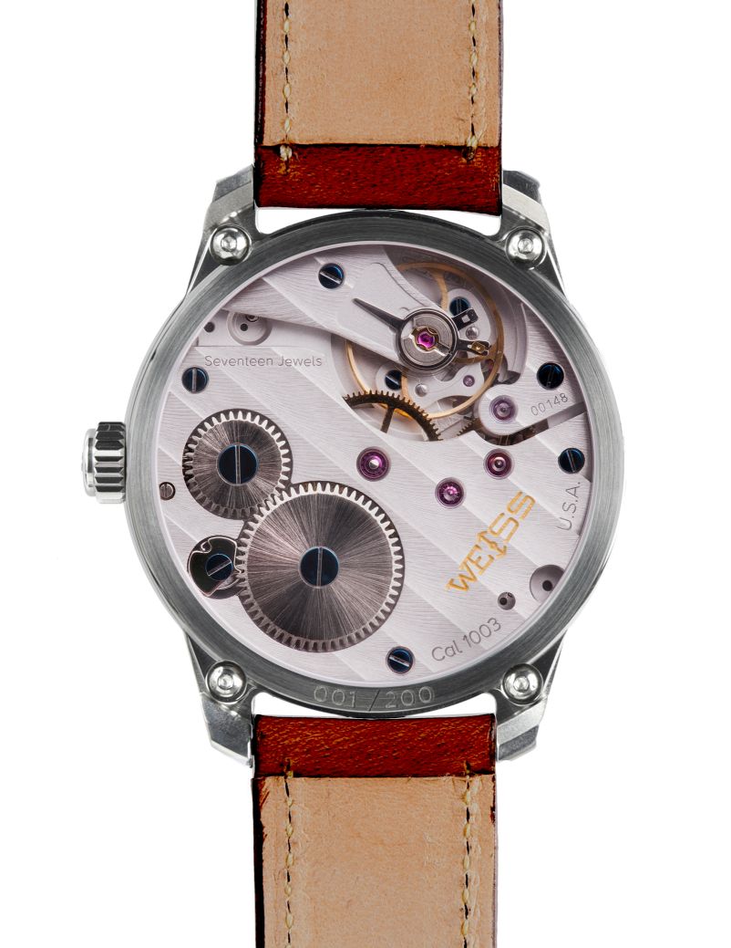 Круглый корпус новинки, изготовленный из нержавеющей стали, диаметром 42,0 мм, толщиной 12,8 мм, с 20-миллиметровым расстоянием между ушками, водонепроницаемый до 100 метров. Завинчивающаяся рифленая заводная головка расположена на 3 часах. Сапфировое стекло установлено на передней стороне часового корпуса (выпуклое) и на его привинчивающейся задней крышке. Циферблат латунный с синим покрытием, с арабскими цифрами, покрытыми, как и часовая и минутная стрелки, люминесцентным составом SuperLuminova белого цвета. Модель оснащена мануфактурным американским механизмом с ручным заводом Weiss 1003, на 17 камнях, с балансовой частотой 21600 полуколебаний в час (3 гц), 46-часовым запасом хода, функциями индикации часов, минут (посредством соответствующих центральных стрелок) и секунд (на соответствующем малом боковом циферблате, расположенном на 9 часах). Основатель компании мастер-часовщик Камерон Вайс (Cameron Weiss) собирает и отлаживает каждый калибр вручную.