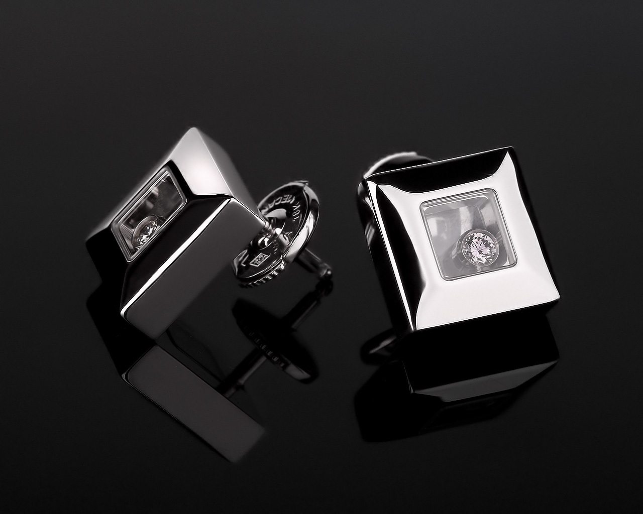 Представляем вашему вниманию оригинальные золотые серьги и подвеску с плавающими бриллиантами 0.11ct от всемирно известного бренда Chopard из коллекции Happy Icons.