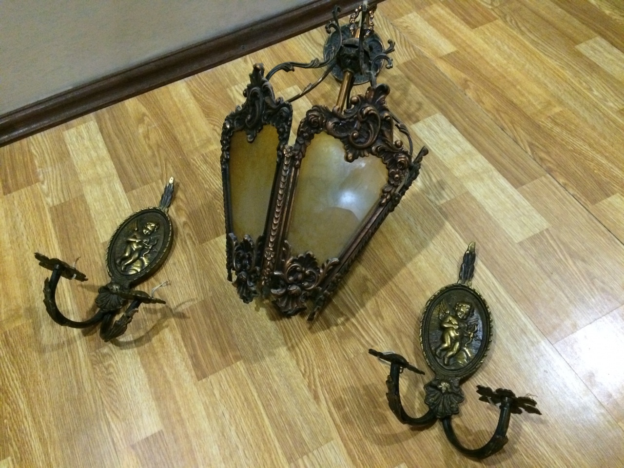 ШИКАРНЫЙ БРОНЗОВЫЙ КОМПЛЕКТ <ЛЮСТРА И БРА АНГЕЛЫ>