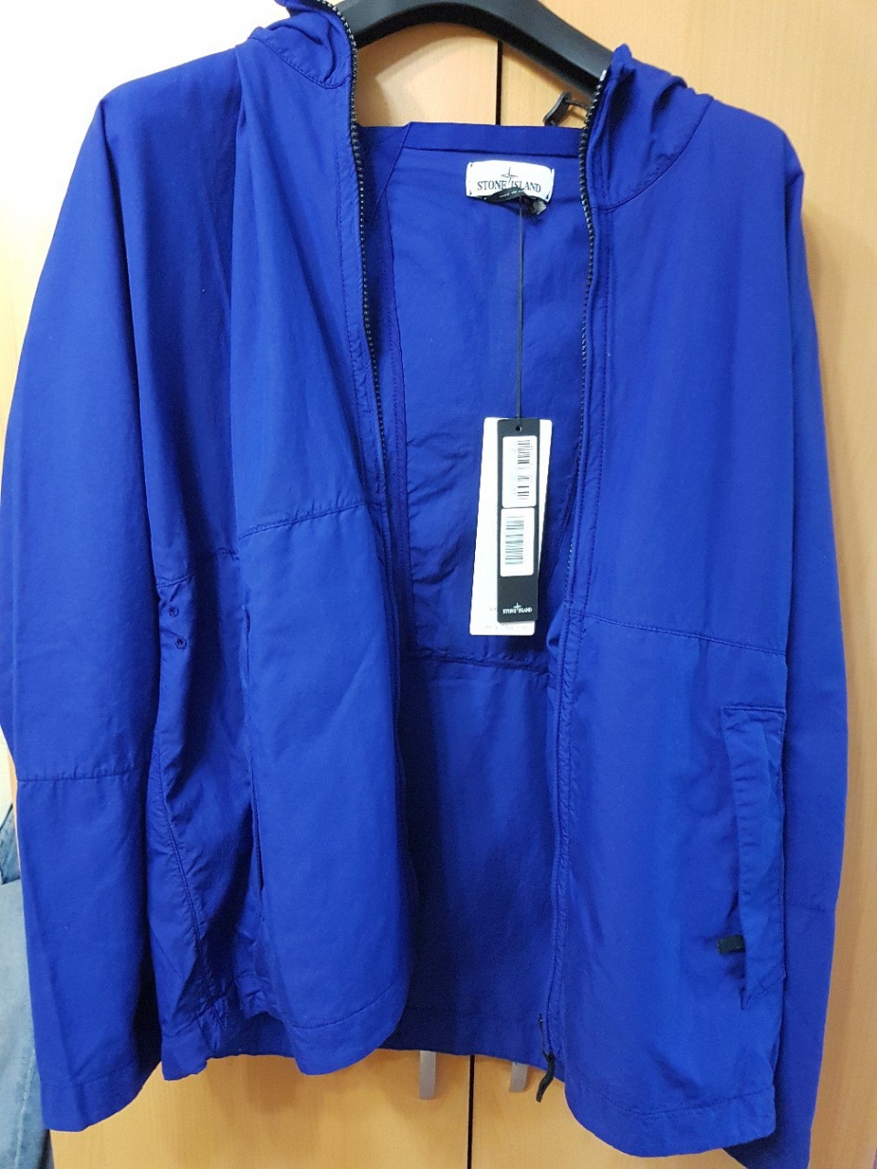 Куртка с капюшоном из хлопко-нейлонового репса. Эта модель, выполненная в эксклюзивной и инновационной технике жаккардового плетения Stone Island, характеризуется тесьмой с логотипом в виде розы ветров. Материал приятный, дышащий, не жаркий, на лето самое то.
