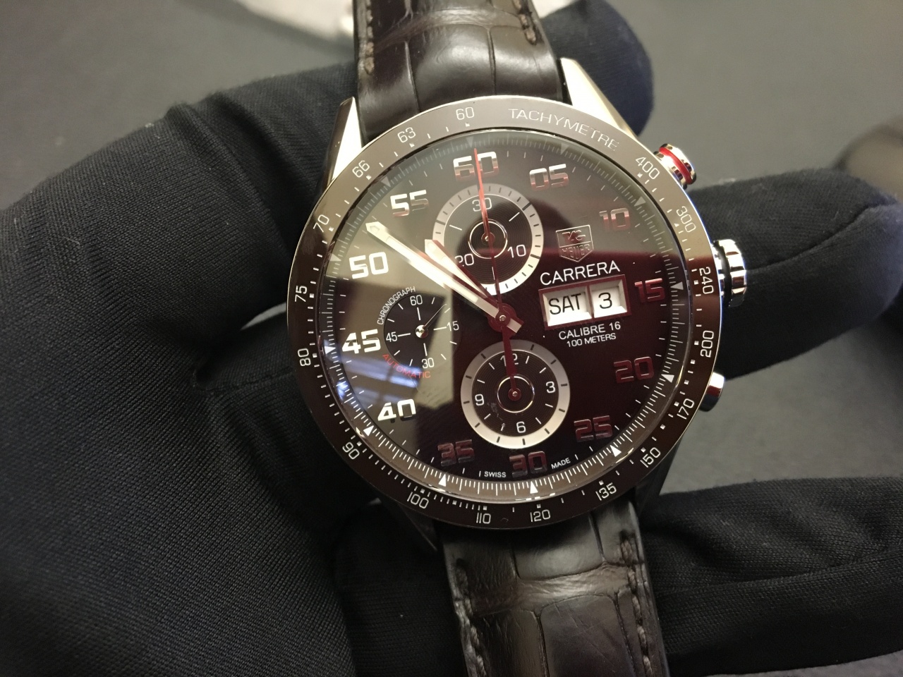 Надежная и практичная, с современным дизайном модель Carrera Automatic Chronograph Day-date от Tag Heuer. На коричневом циферблате находятся три хронографических циферблата, окошечки дня недели и даты и тахиметрическая шкала. Корпус нержавеющей стали, 43 мм. Циферблат коричневый. Водонепроницаемость 100 м. Стекло - сапфир с антибликовым покрытием. Браслет кожаный.