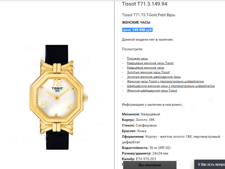 Tissot Petit Bijou / женские / 24мм / золото 18к / кварц / ремешок / перламутр / 63% OFF! - Часовой форум Watch.ru