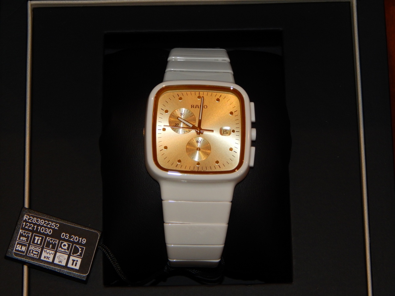 Rado R5.5 Chronograph R28392252 / элегантный женский хронограф / белая керамика с золотом / SALE 50%