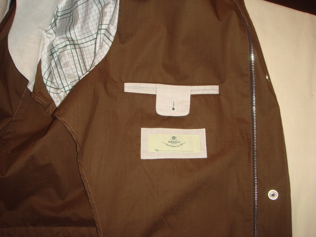 Продается новая легкая мужская куртка бренда де люкс LUIGI BORRELLI NAPOLI превосходного исполнения, плотная ткань, бежевого цвета, галлограмма, воротник стойка, в воротнике облегченный капюшон, молния, кнопки и пуговицы с логотипом бренда, множество карманов, накладные хлястики на манжетах рукавов, на плечах, внутри на полуподкладке, состав : 100% хлопок, все бирки и запасная фурнитура прилагаются , гарантированный 100% оригинал, размер 54(IT), российский размер 52-54, производство Италия