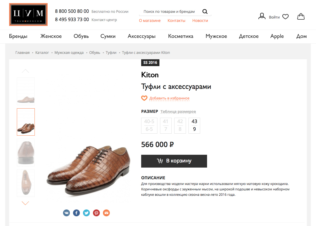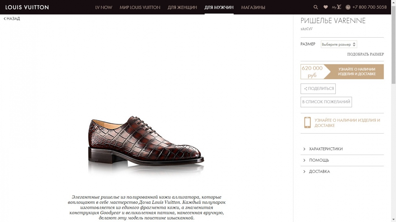 Стоимость аналогичных туфлей от Kiton (марка соизмеримого ценового диапазона с Zilli) - 566.000 руб., Louis Vuitton - 620.000 руб.!