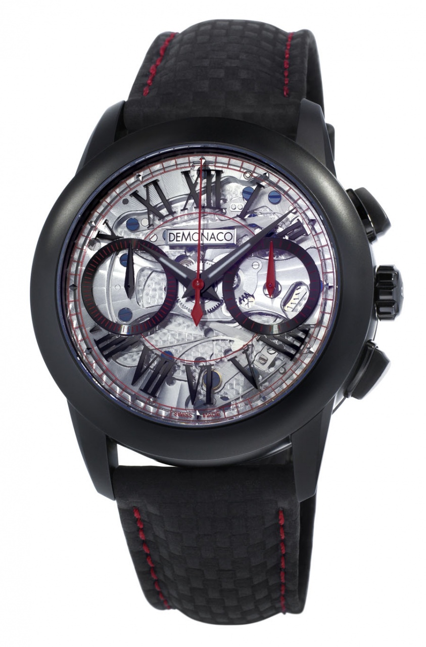 Круглый корпус новинки, диаметром 42,0 мм, водонепроницаемый до 30 метров. На торце рифленой заводной головки, расположенной на 3 часах, выгравирован логотип бренда Ateliers deMonaco. Пушеры хронографов размещены на 2 и 4 часах. Сапфировое стекло установлено на передней стороне часового корпуса (с антибликовым покрытием) и на его завинчивающейся задней крышке. Циферблат полностью выполненный из прозрачного сапфира, с накладными ромбовидными часовыми маркерами, черными римскими цифрами, стрелками (в том числе все, кроме секундной хронографической, выполненные в стиле Dauphine). Модель оснащена мануфактурным швейцарским автоматическим механизмом Ateliers deMonaco dMc-760, на 32 камнях, с балансовой частотой 28800 полуколебаний в час (4 гц), 38-часовым запасом хода, функциями индикации часов, минут (посредством соответствующих центральных стрелок), секунд (на соответствующем малом боковом циферблате, расположенном на 9 часах), а также с flyback-хронографом (центральная секундная стрелка и круглый аналоговый 30-минутный счетчик, расположенный на 3 часах). Калибр отменно отделан и декорирован.