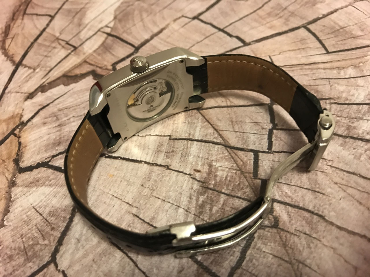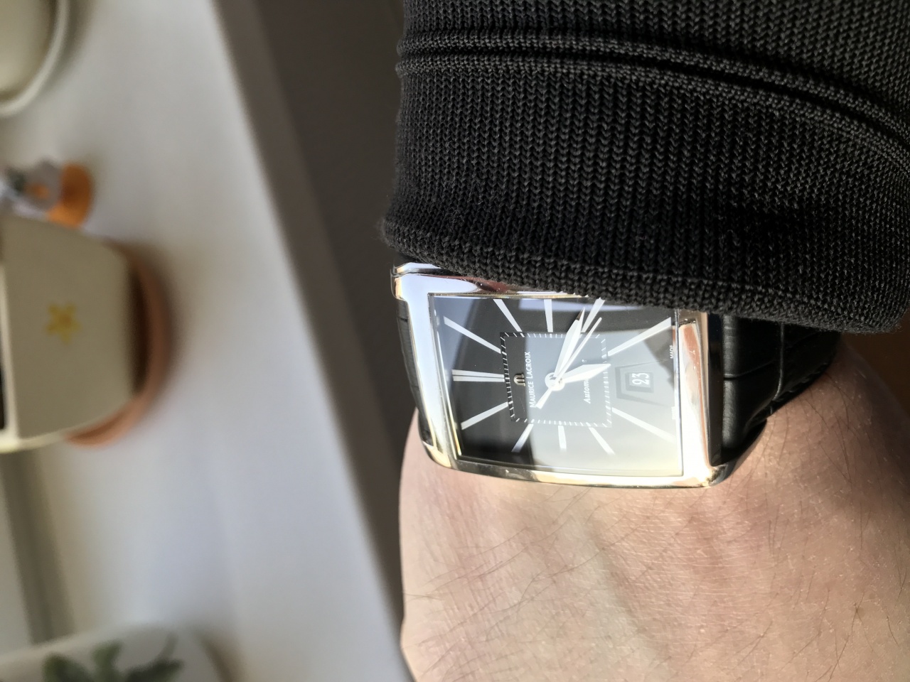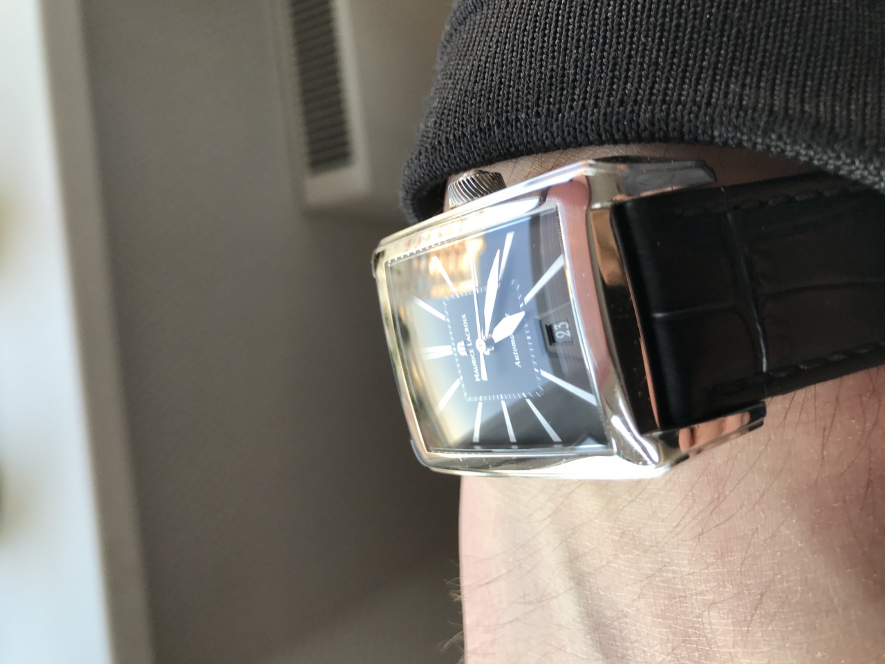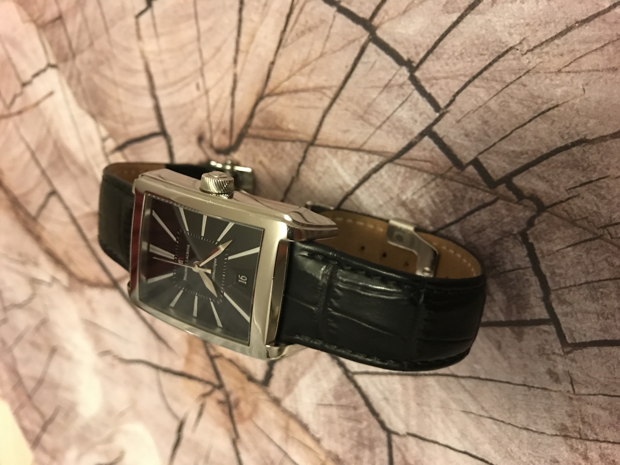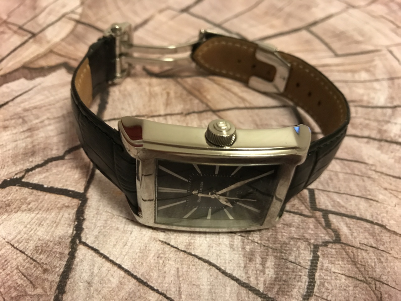 Мужские швейцарские часы Maurice Lacroix из коллекции Pontos, редкая модель Rectangulaire Automatique PT6117-SS001-330. Присутствуют легкие следы естественной эксплуатации на корпусе и застежке, в глаза не бросается! Ремешок месяц назад был заменен на новый не оригинальный из натуральной кожи.