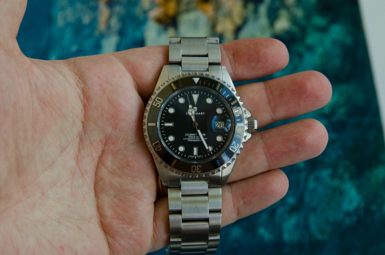 Внутри надёжная ETA (лучшее, что сделано в эконом сегменте!), безель - керамика, корпус и браслет сатинирован (сочетание устойчивое к внешним воздействиям!), водозащита 300 метров (часы совместимы с водной стихией в любом виде!), дизайн - лучшее, что придумали на настоящий момент (плод многолетних трудов дизайнеров