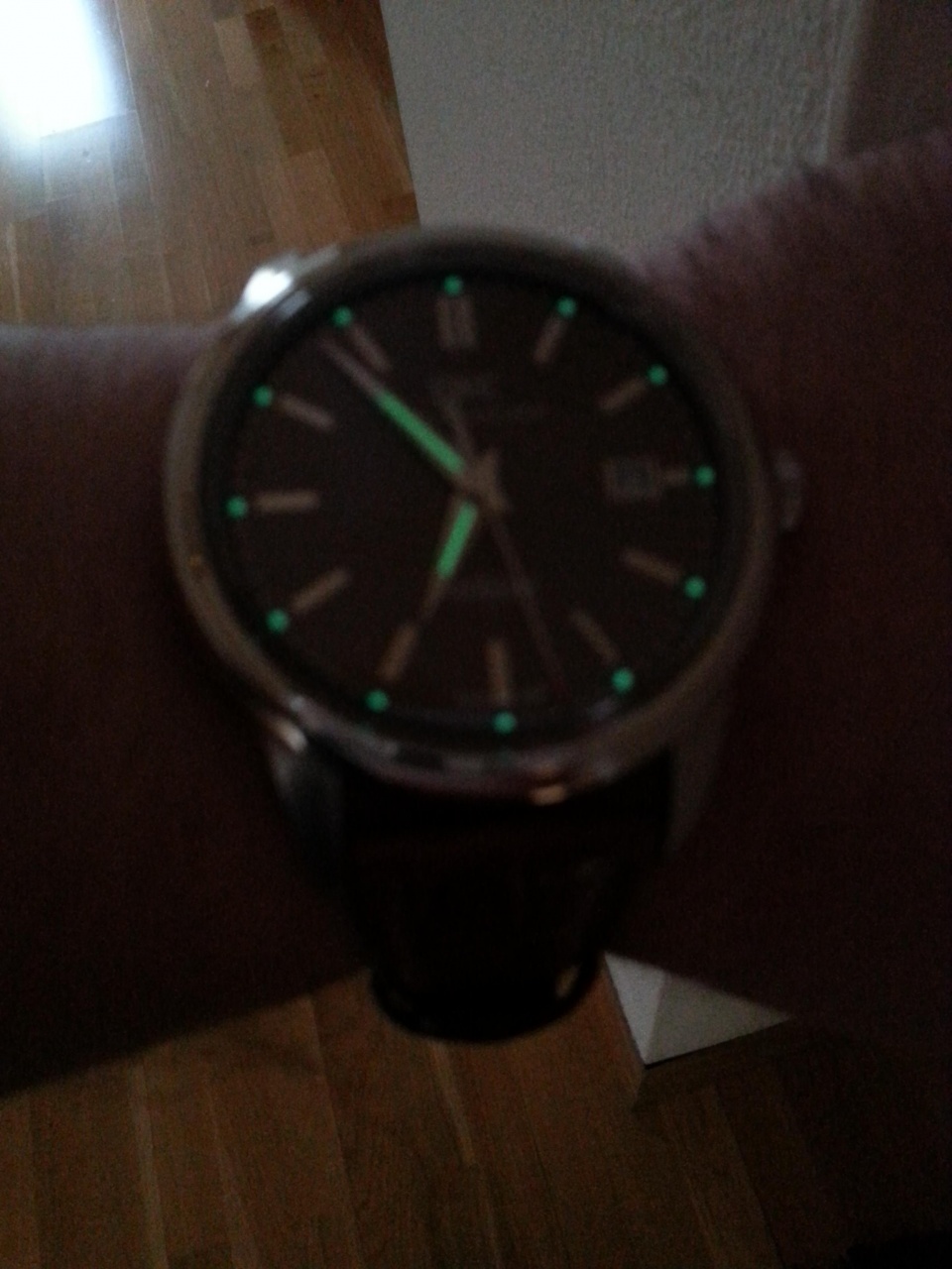 Коричневый циферблат, на коричневом кожаном ремешке (аллигатор).