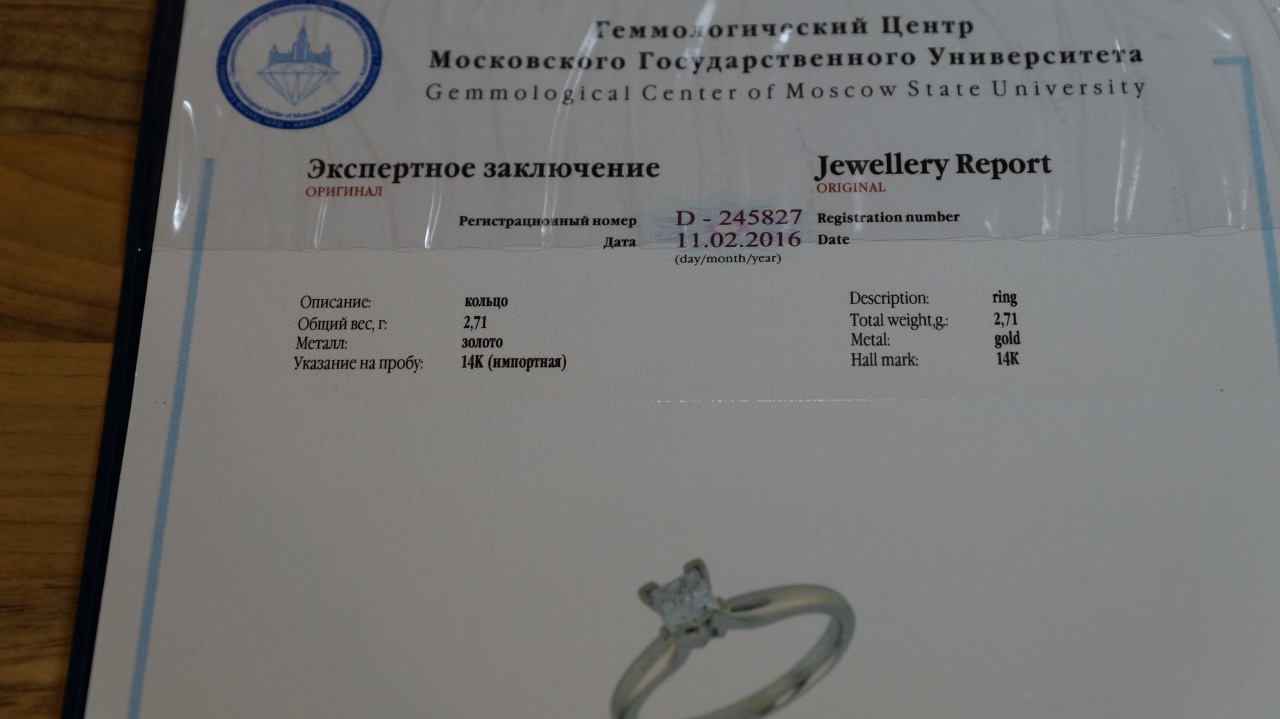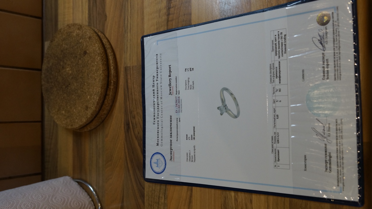 Также на кольцо имеются сертификаты: