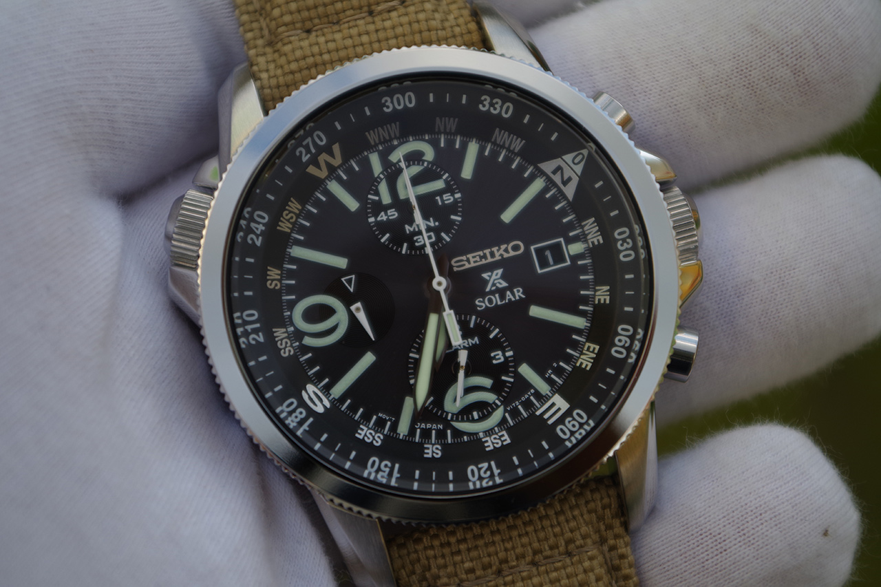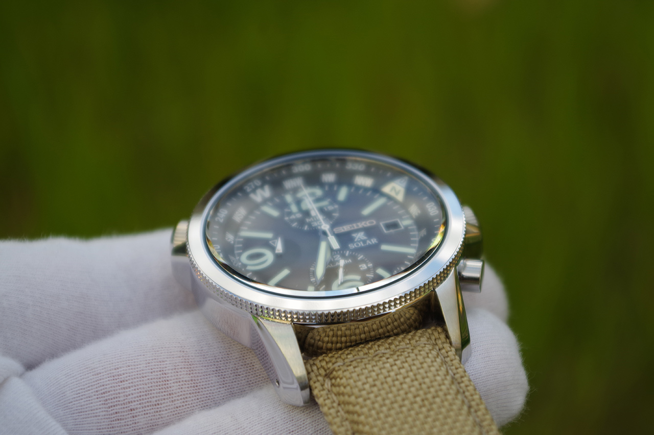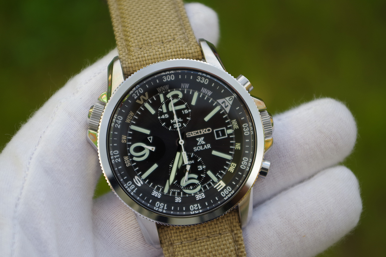 PROSPEX Solar Alarm. Функция индикации заряда (EOL). Вращающееся кольцо с солнечным компасом на циферблате. Завинчивающаяся задняя крышка.