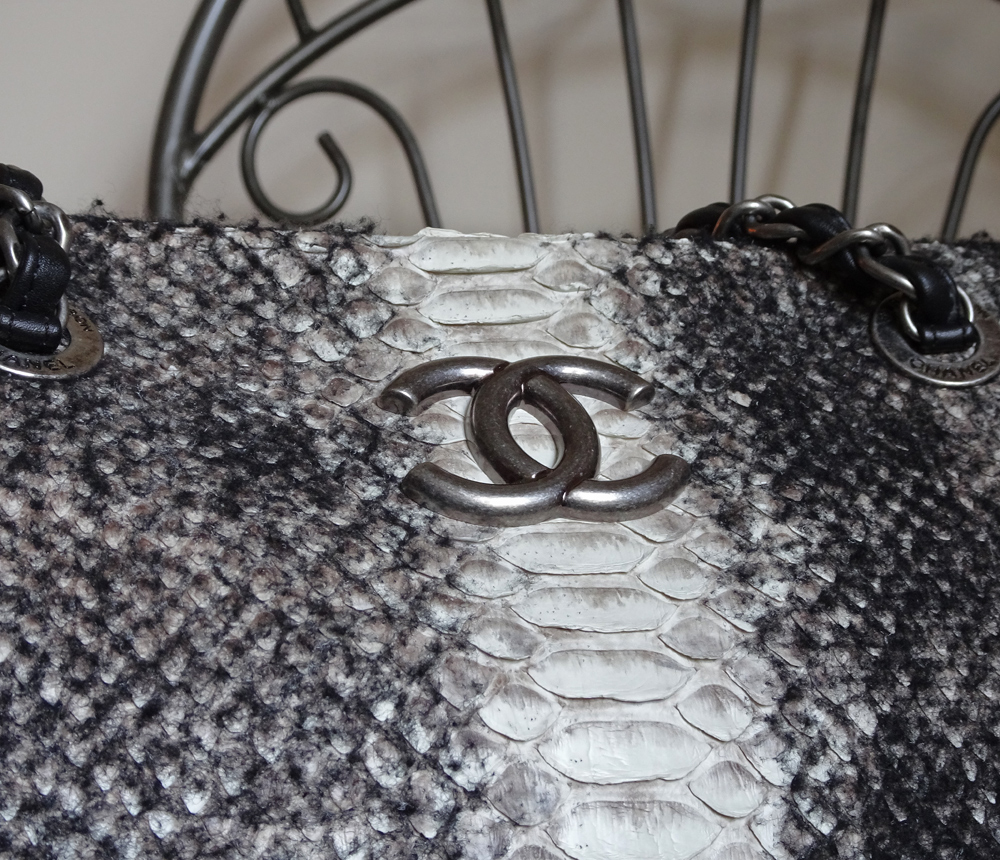 CHANEL роскошная сумка, лимитка, эксклюзив: ПИТОН с отделкой из шерсти!