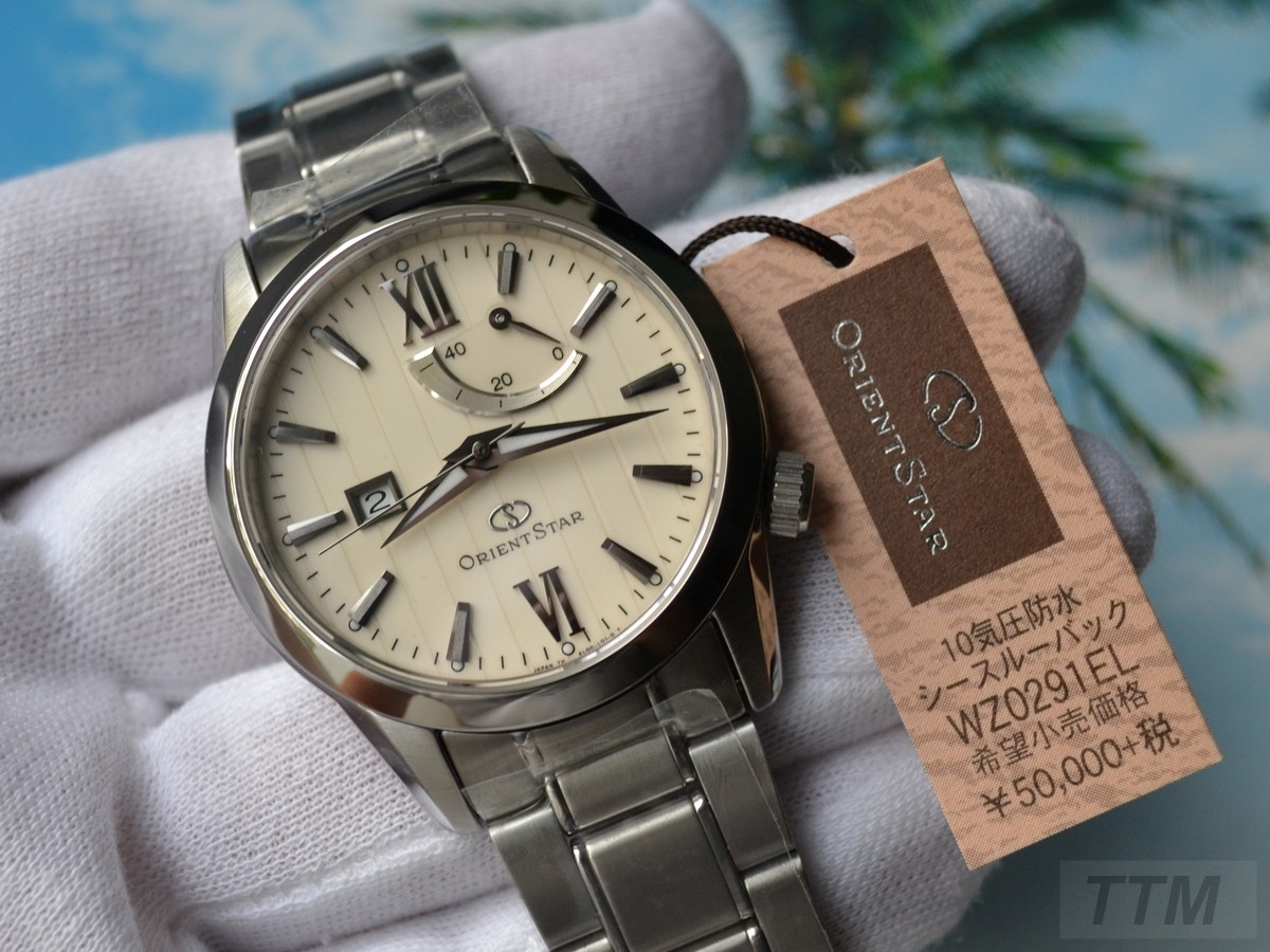 Кремовый циферблат, стрелки и индексы с люминесцентным покрытием.