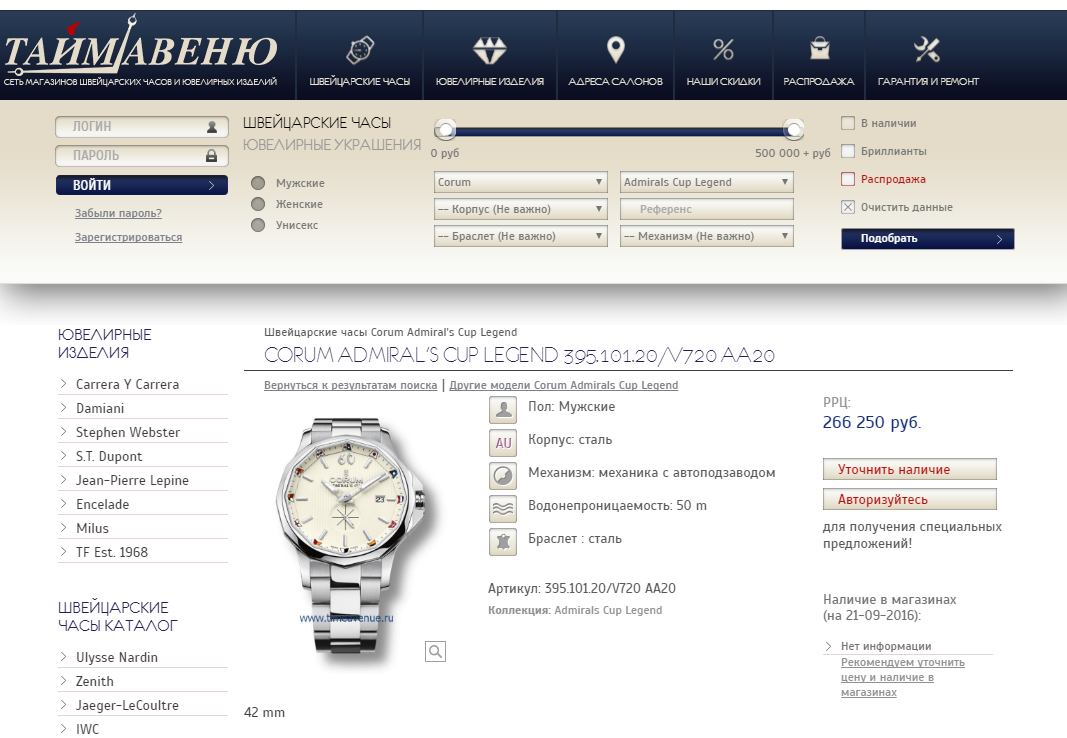 Ритейл часов у официальных дилеров - 266 000 руб.