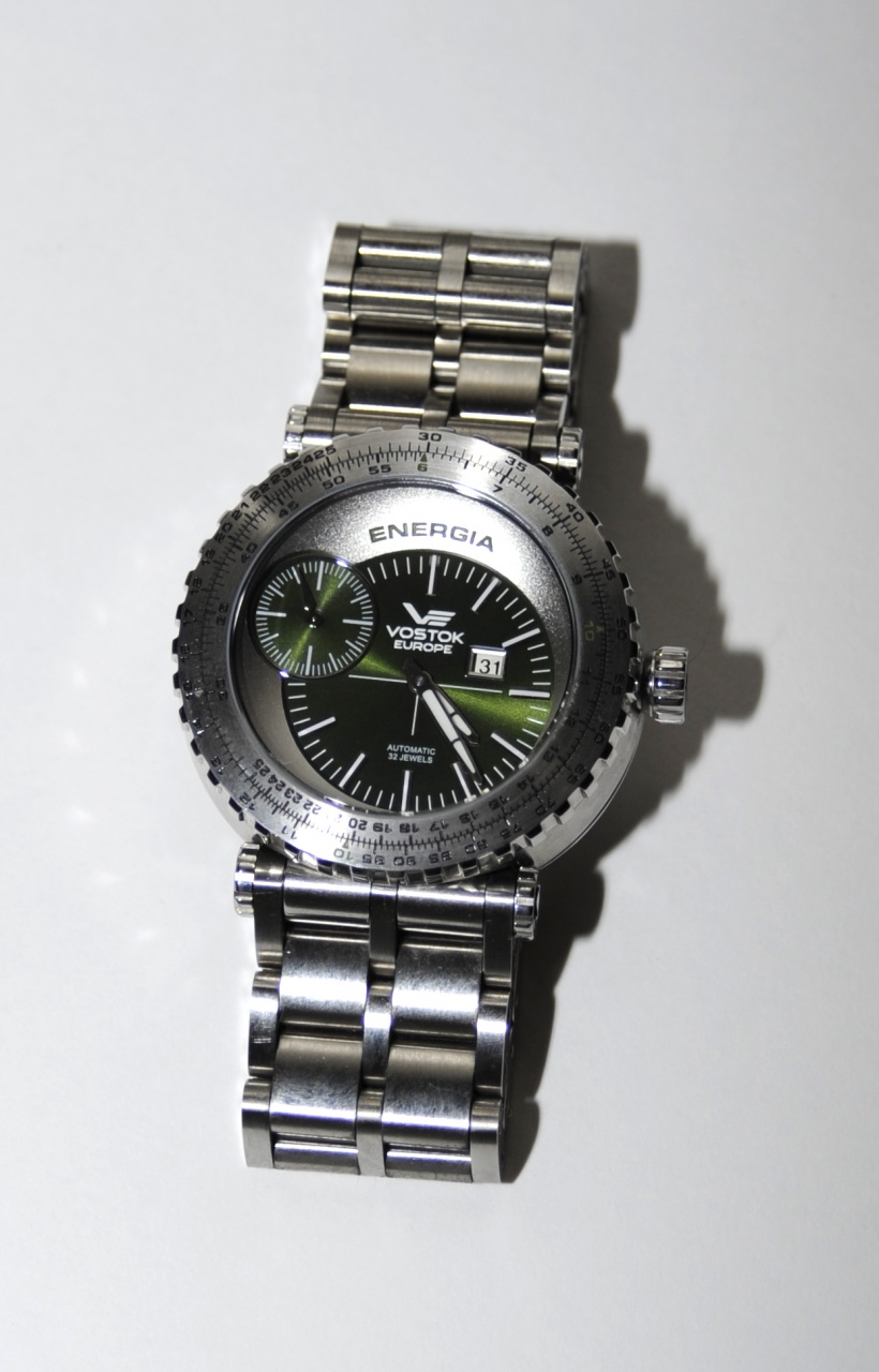 Покупка в меру целевая, брал в смирсе на Арбате. Энергия достаточно бодро расходилась, а с учетом лимитированности был риск не успеть. Нацеливался на часики с комбинированным покрытием – частью полированная/сатинированная сталь, частью чернение. Не было в тот момент. Взял зеленые. О чем собственно не жалею.
