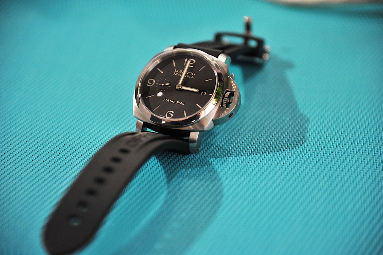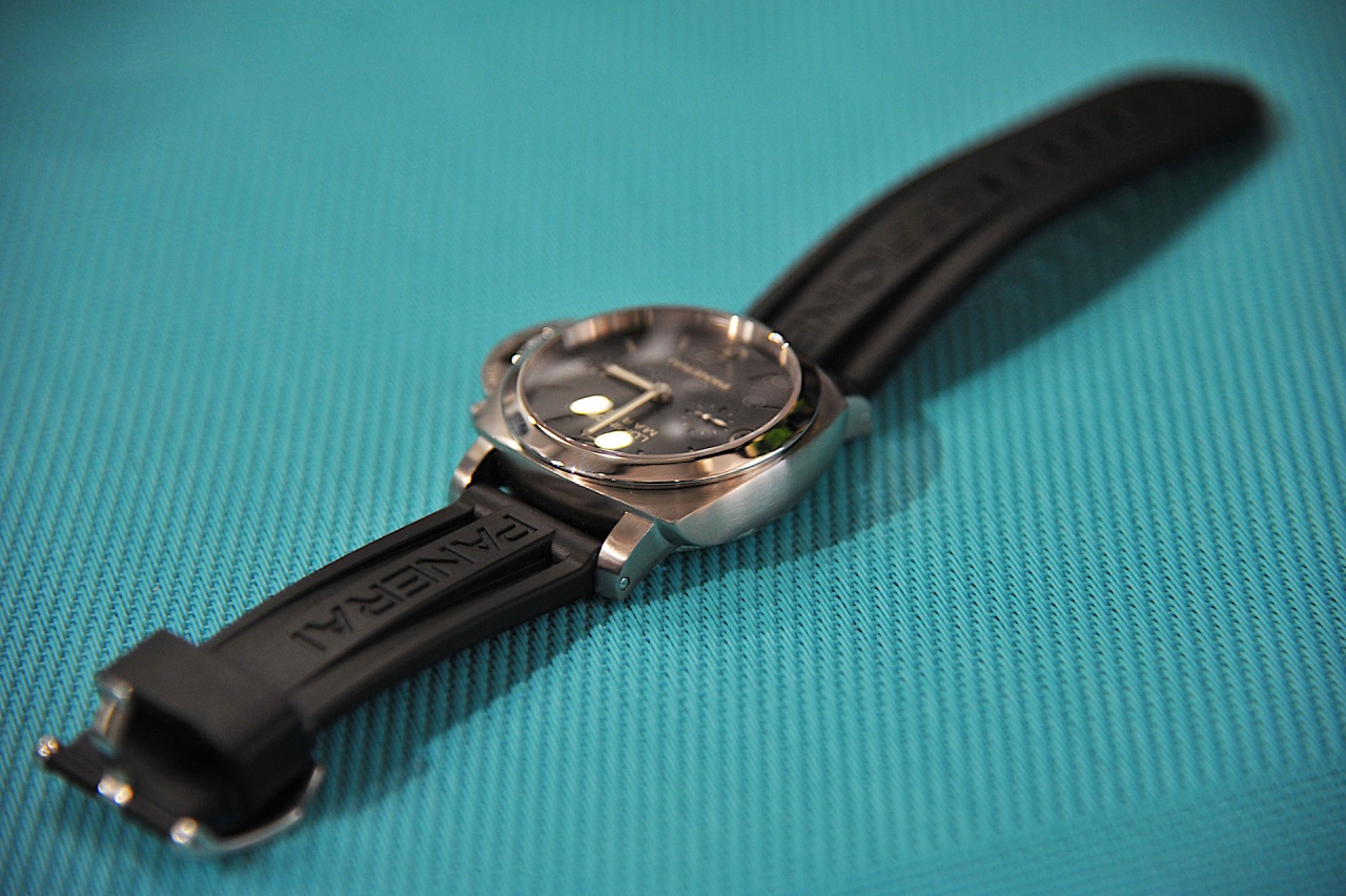 Pam 312 - " пузатый" корпус, самый сверхнадежный и неприхотливый механизм с трехдневным запасом хода, самая продвинутая система быстрой смены ремней, и только самые нужные функции: автоподзавод, дата, секунда, быстрый перевод часа( даты).
