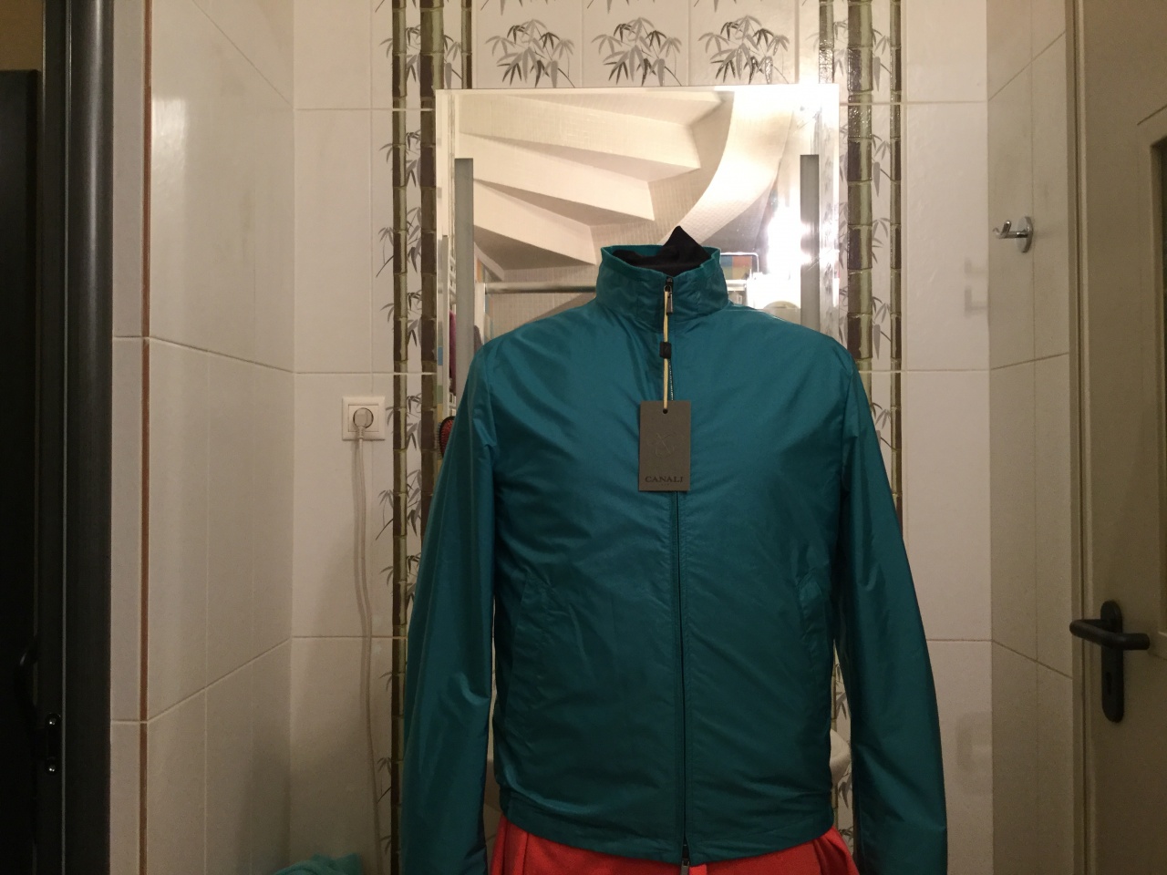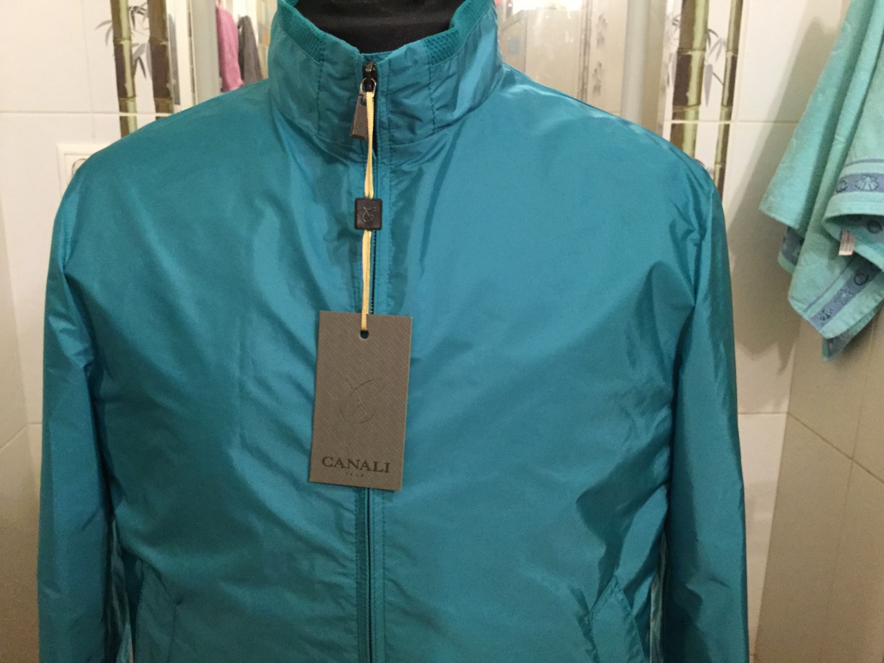 Предлагается к продаже лёгкая мужская куртка люксового бренда САNALI бирюзового цвета, застегивается на молнию с двойным бегунком, на подкладке, наружными прорезными карманами,внутри карман на молнии, манжеты рукавов на кнопках, состав 100%полиамид, размер 52(IT), российский размер 50-52, производство Италия
