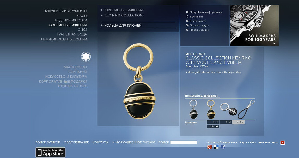 Брелок MONTBLANC с напылением желтого золота и вставкой из оникса.