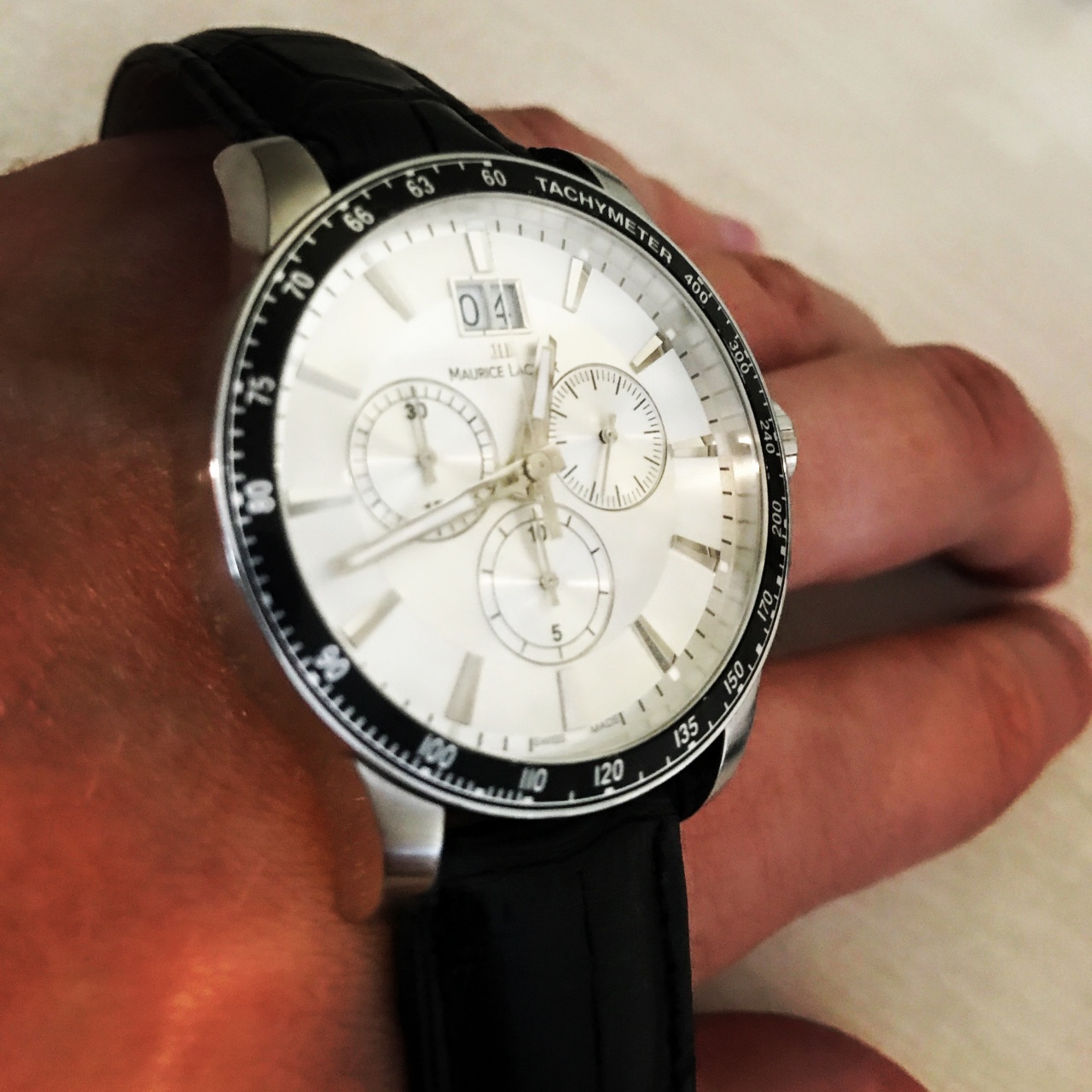 Мужские швейцарские наручные часы Maurice Lacroix MI1098-SS041-130 с хронографом