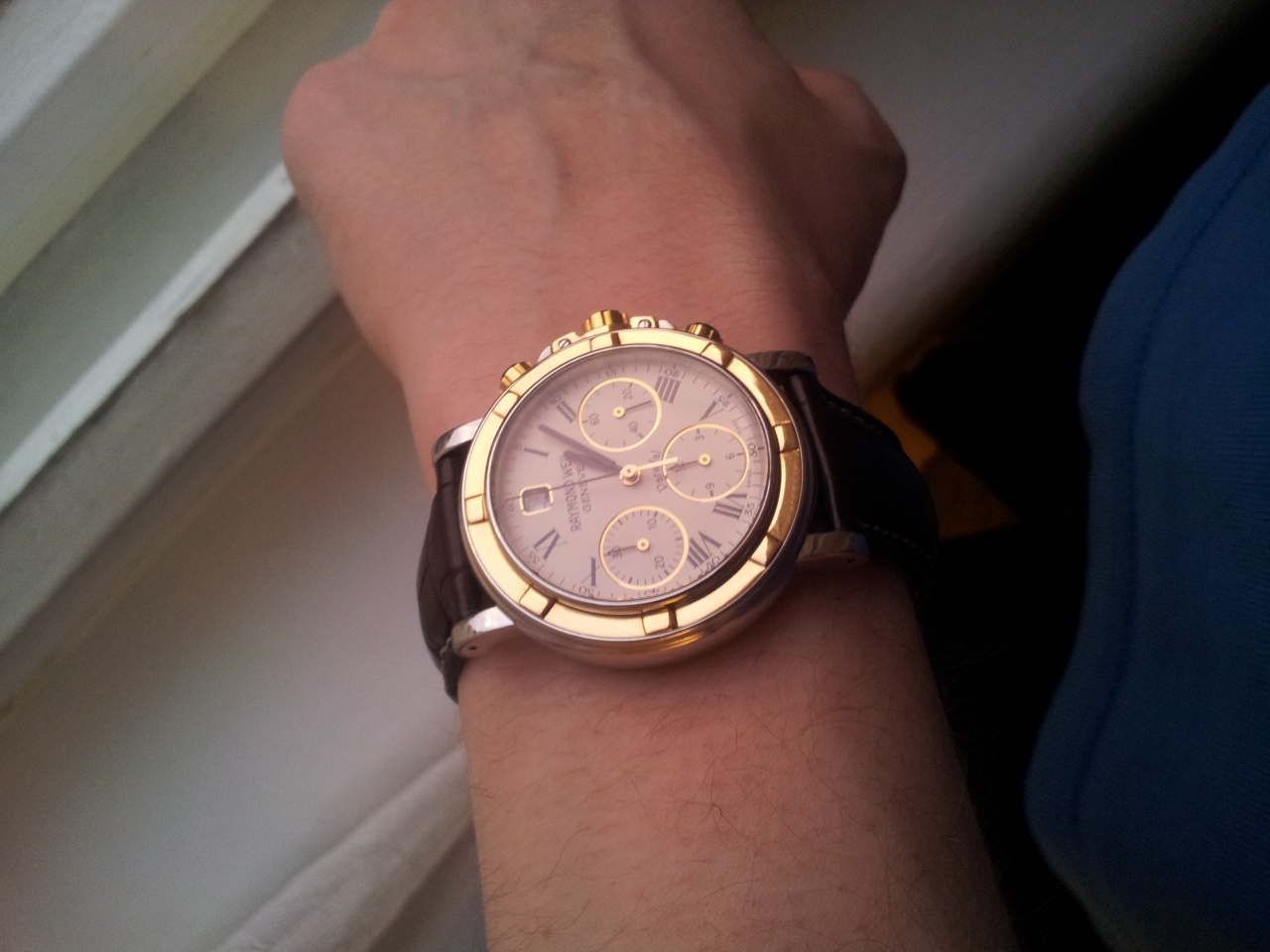 Модульный хронограф 7310, стоит мех 2892 А2 (ETA) с заказным модулем Дюбуа Депра на 57 камнях. Официальный ретейл около 4000 евро. Водонепроницаемость - 100 м (10 ATM). Материал - Нержавеющая сталь, вставки золото 750 пробы 18 карат (около 3-4 гр). В кнопках александритовые сапфиры 3 шт (меняют цвет от освещения с фиолетового до голубого). Автоподзавод, хронограф плавный (минутный и часовой накопители двигаются плавно), дата мгновенного действия. Cтекло сапфировое. Обслуживался в мастерской, настроен как хронометр 0-2 сек., есть гарантия около 5 месяцев. Продаю в СПб, либо обмен на золотую омегу (omega) с автоподзаводом и датой. Если модель дороже, например, винтажный constellation, могу доплатить. Часы достаточно тонкие, фишка модульных хронов, диаметр при этом 41 мм. Довольно изящная модель, это уже ювелирные часы. Часы в отличном состоянии. Торг, обмен, предложения в Личку.