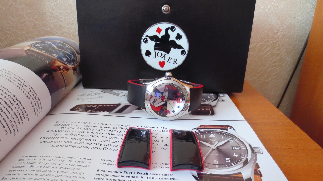 В коллекционном состоянии на полном комплекте, заполненная гарантийная карта, новый оригинальный ремень именно от JOKER + сделанный на заказ ремешок от известного страподела из кожи шелкордована. Надевались не более 10 раз, нет ни царапок ни сколов.
