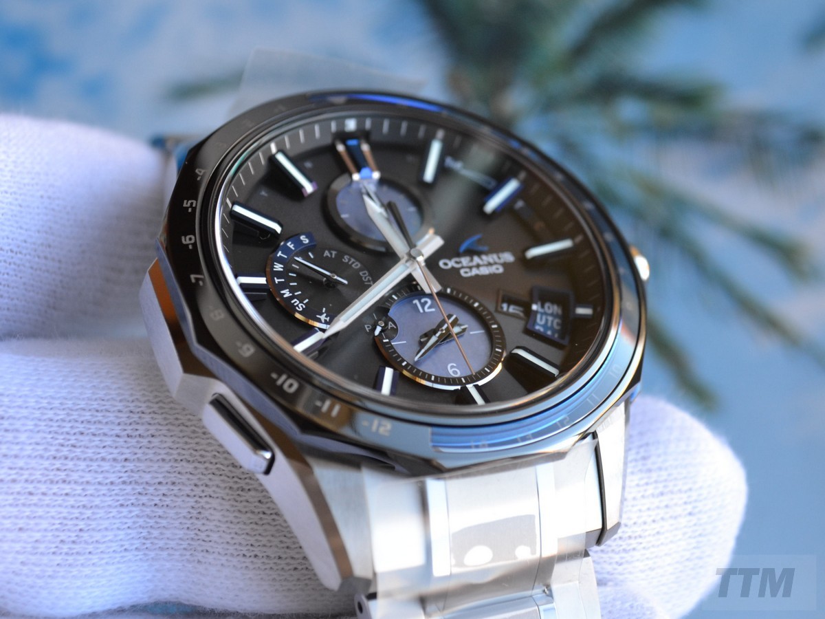 эту модель. Уникальный безель сплав титана и сапфира, новый калибр с тройной синхронизацией.