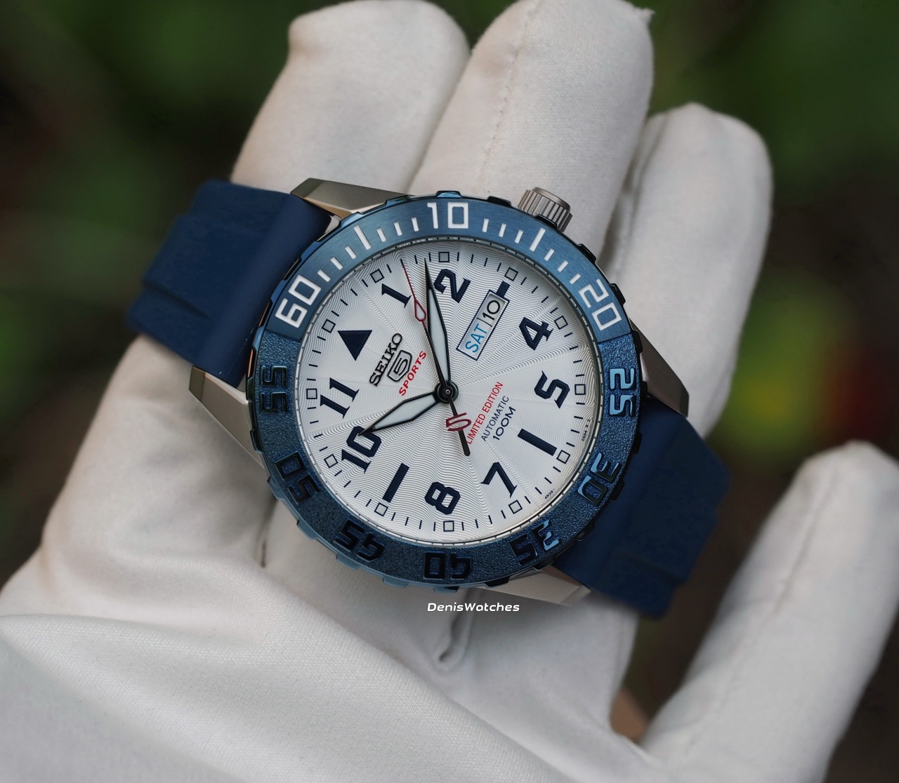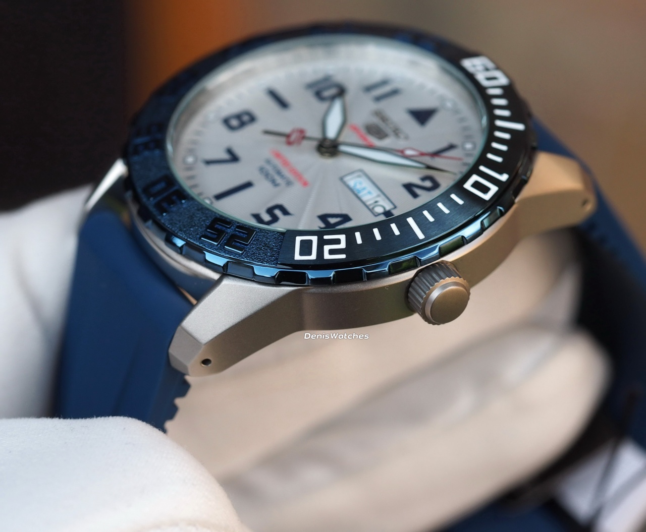 Темно-синие лаковые стрелки, большая цифра 5 на секундной стрелке
