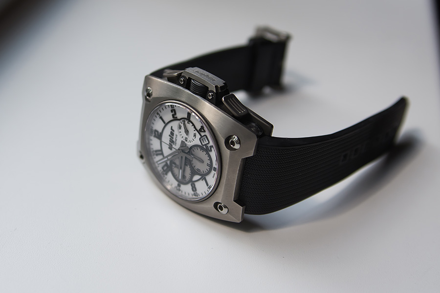 Усложнения: Дата, хронограф, люминесцентные стрелки и метки, ЗГ с оригинальным фиксатором, патентованная противоударная технология, гибкий баланс.