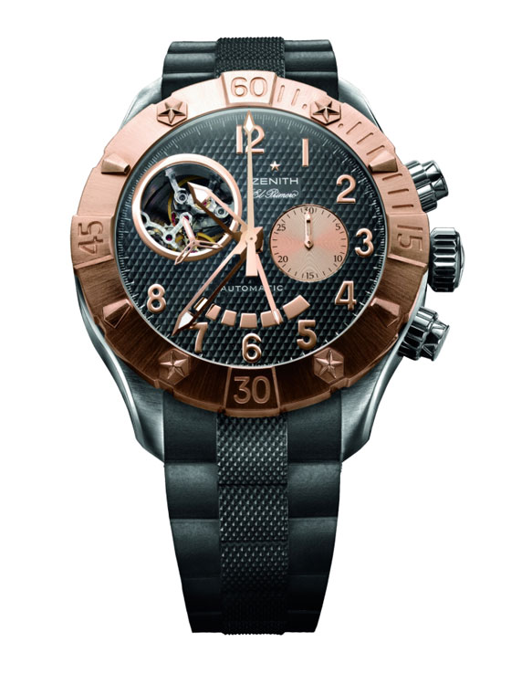 Zenith в 2006 году представил справ Zenithium. Это легкий, устойчивый к воздействиям сплав титана, ниобия и алюминия. Использовался для изготовления мостов механизма.