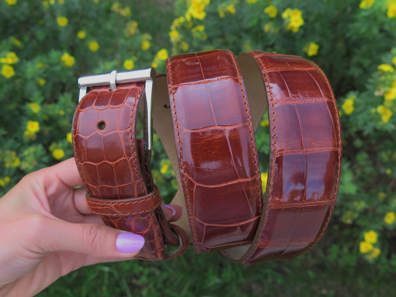 Мужской ремень ручной работы Brianza, изготовлен из 100% лакированной кожи миссисипского аллигатора высочайшего качества выделки.
