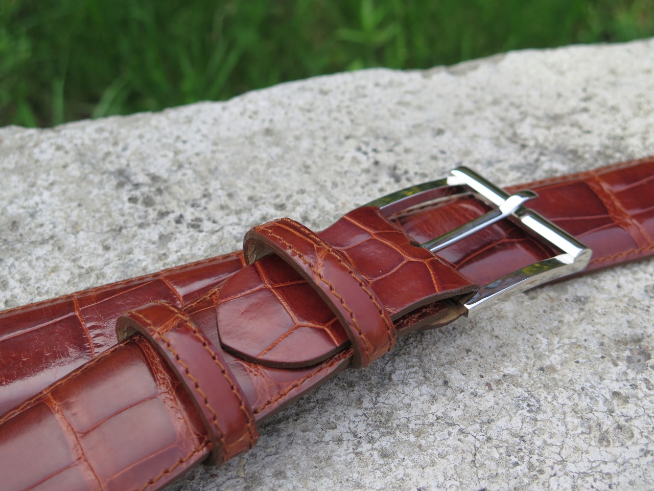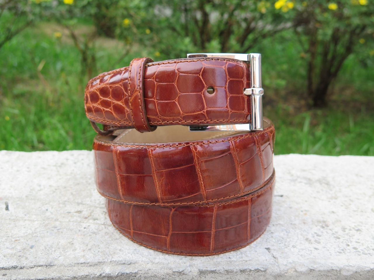 МУЖСКОЙ РЕМЕНЬ КОНЬЯЧНОГО ЦВЕТА ИЗ КОЖИ АЛЛИГАТОРА. ИТАЛИЯ