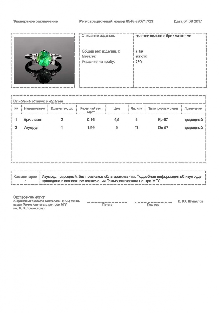бриллиантовое кольцо, кольцо с изумрудом 1.99ct |