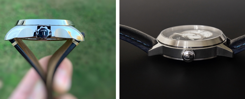 Tissot: минималистичный циферблат, внимание к деталям. Трехмерные накладные маркеры, которые играют на свету. Контур манежа с часами/минутами выполнен из белой текстуры, напоминающей бумагу - приятный контраст к белому циферблату. Дужки короткие, и часы хорошо сидят на руке. Браслет, по мнению Affordablewristtime, неплох, но не подходит к часам.