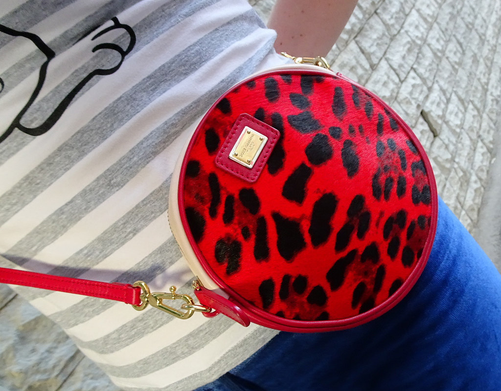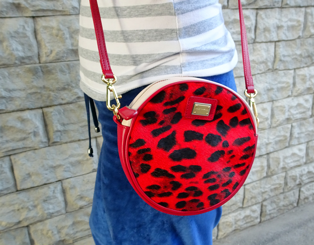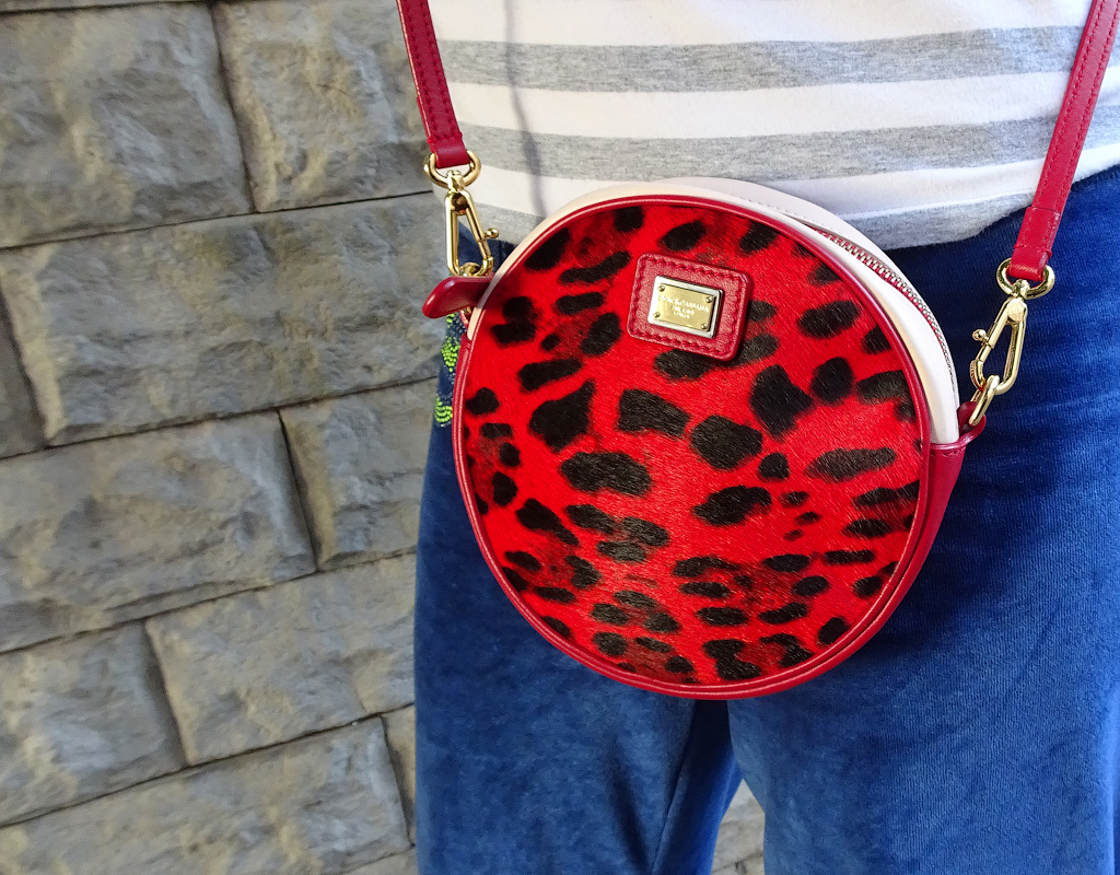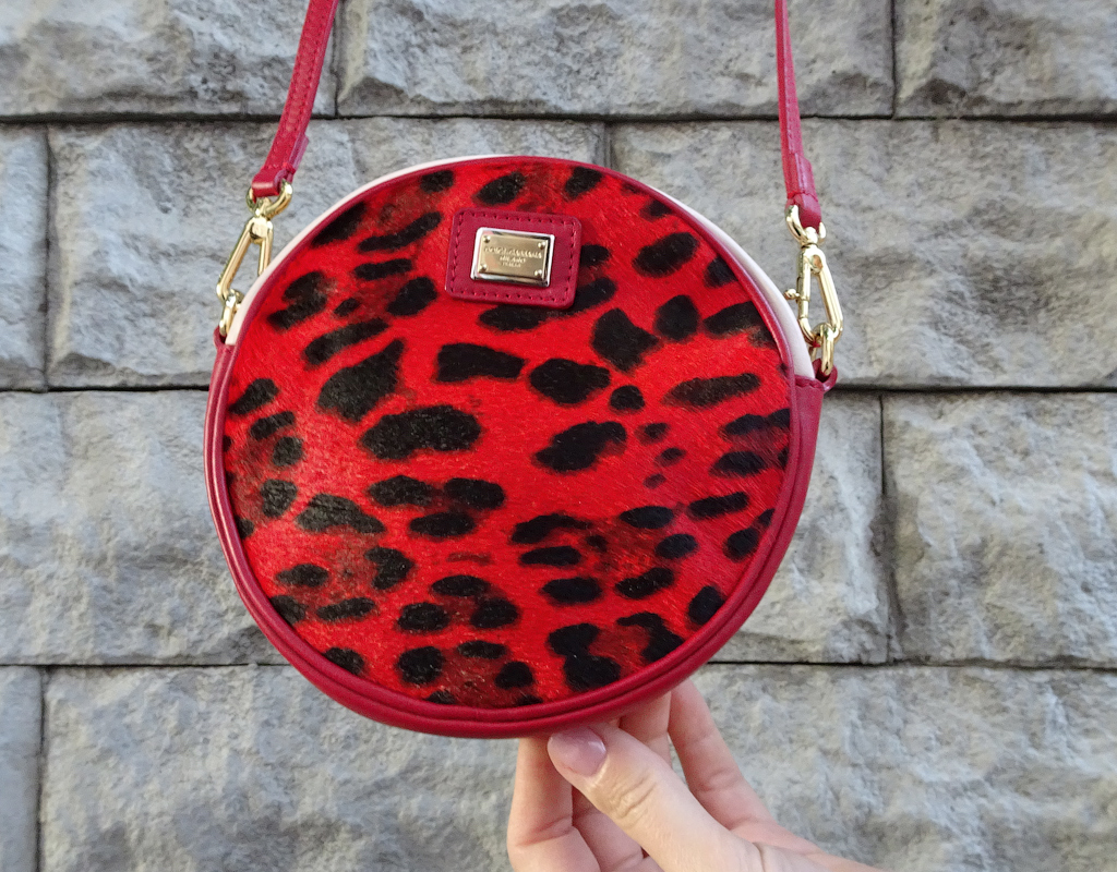 Особенность сумки - внешняя сторона это натуральный короткостриженный мех (так называемый "мех пони"). Фирменный леопардовый узор Dolce & Gabbana в красном цвете. Приятен на ощупь, очень красиво переливается на свету.