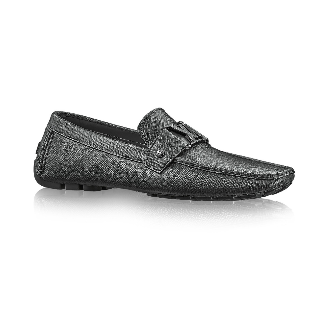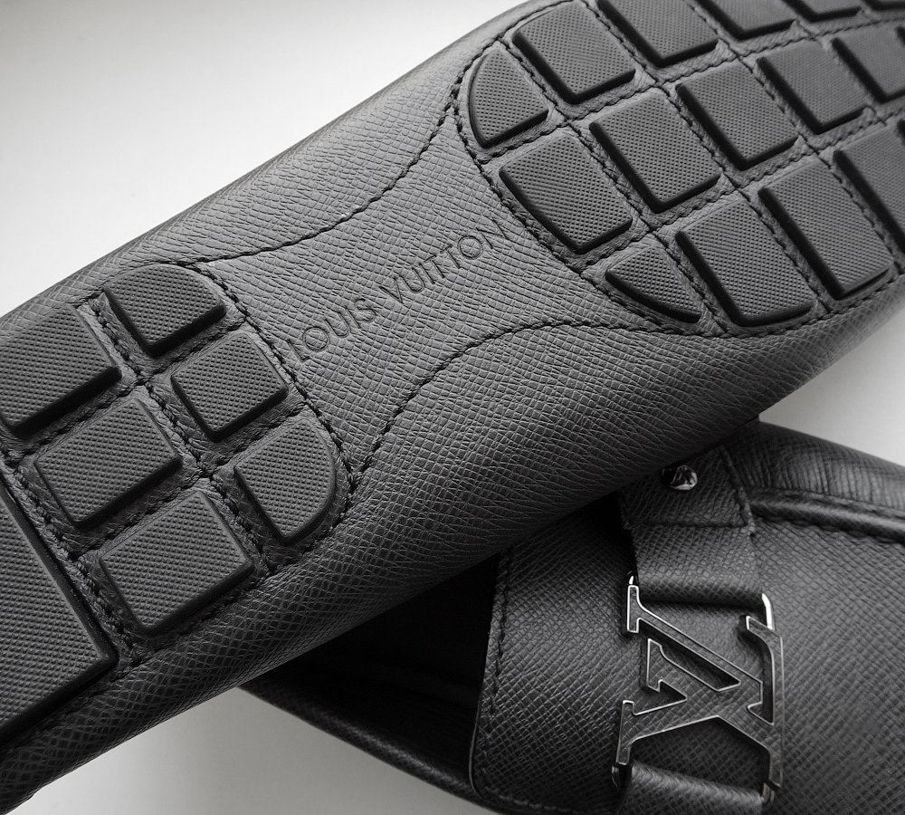"Эти легендарные мокасины с логотипом Louis Vuitton имеют прошитый вручную верх, выполненный из знаменитой кожи Taiga, отлично сочетающийся с коллекцией кожаных изделий, и исключительно гибкую каучуковую подошву с мягкой стелькой."