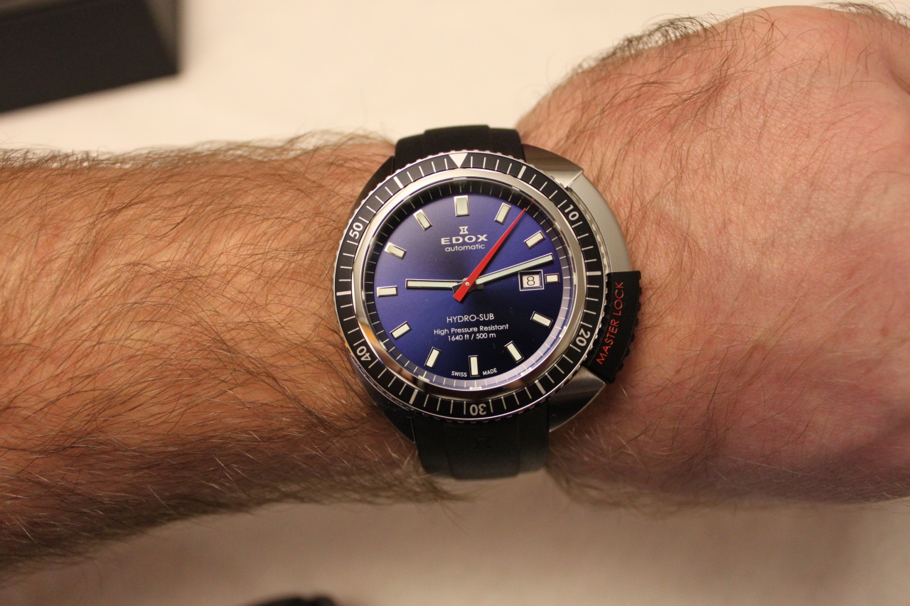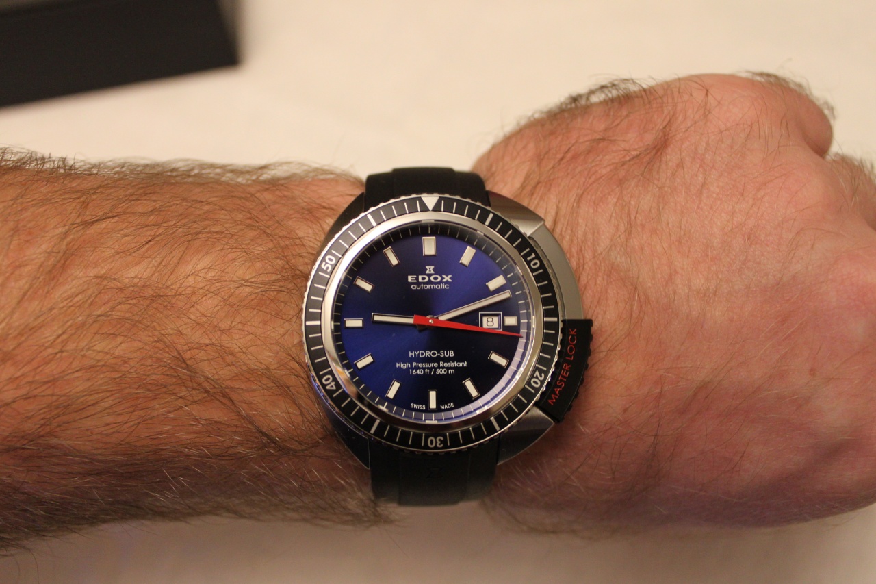 Hydro-Sub Automatic. В механизме 25 камней, частота 28800 полуколебаний в час. Запас хода 38 часов. Противоударное устройство оси баланса Incabloc или Novodiac. Безель вращается в одном направлении, 120 щелчков. Завинчивающаяся заводная головка с защитой и дополнительной блокировкой. Задняя крышка украшена изображением карты северного полушария.