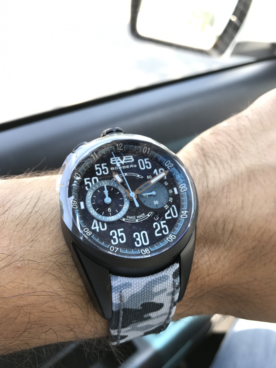 Замечательные швейцарские часы , смотреться стильно и модно. Заводная головка сверху (bullhead), размер примерно 44 мм. Довольно крупные, но хорошо смотреться практически на любой руке ( на фото на запястье 17,5). Отличные часы в стиле милитари.