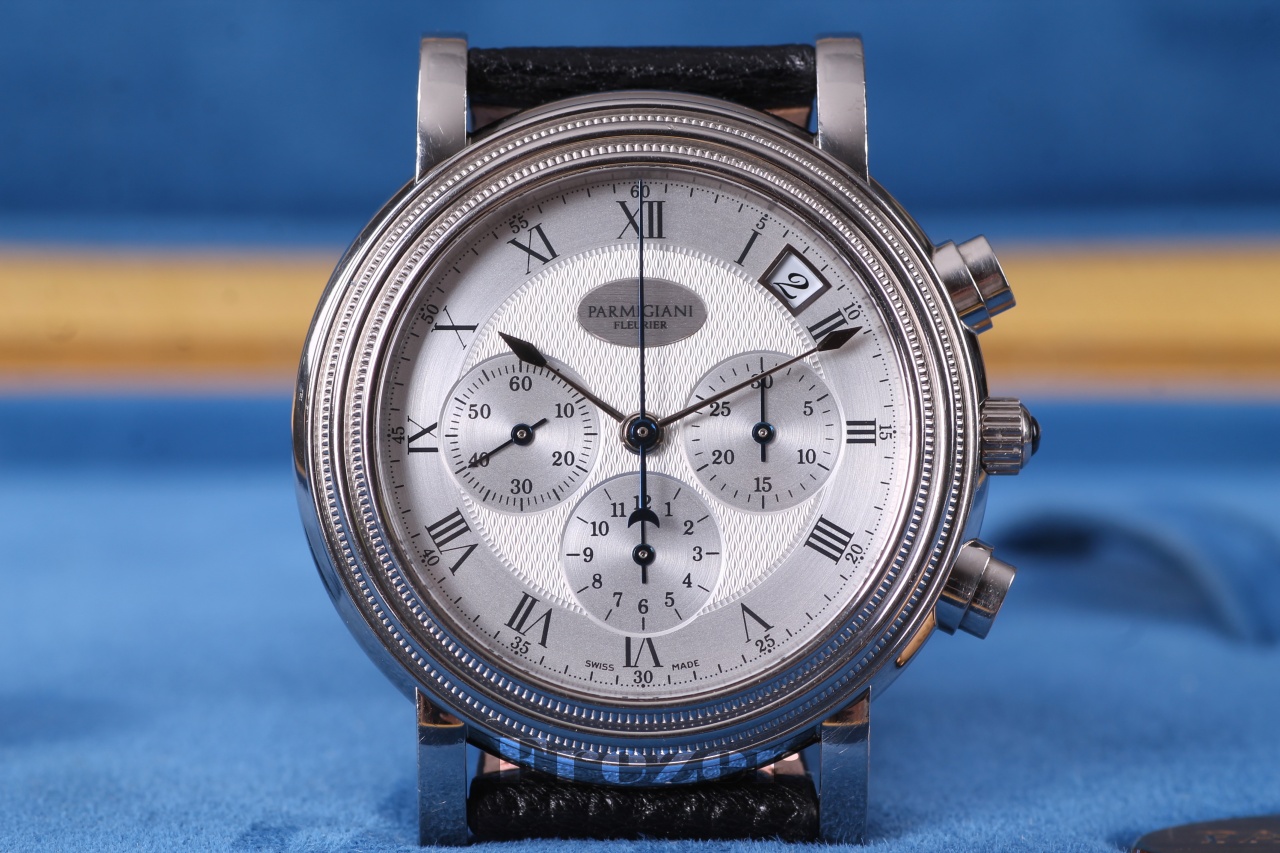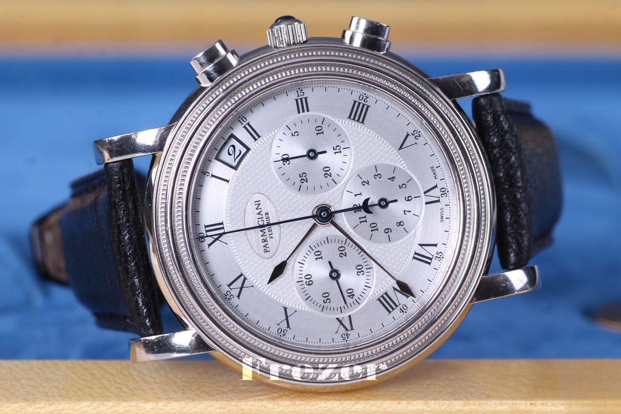 Красивые хронографы от Parmigiani Fleurier, выполнены из 18К белого золота.