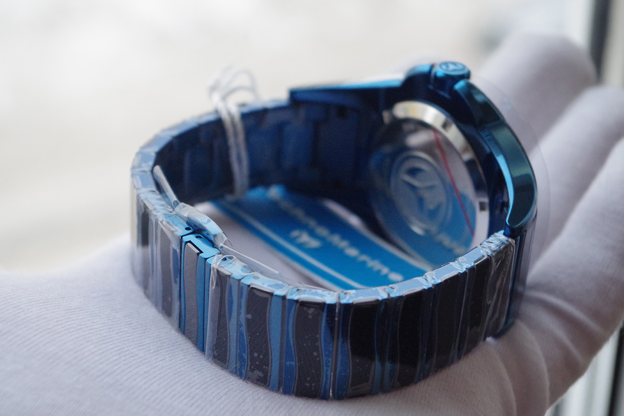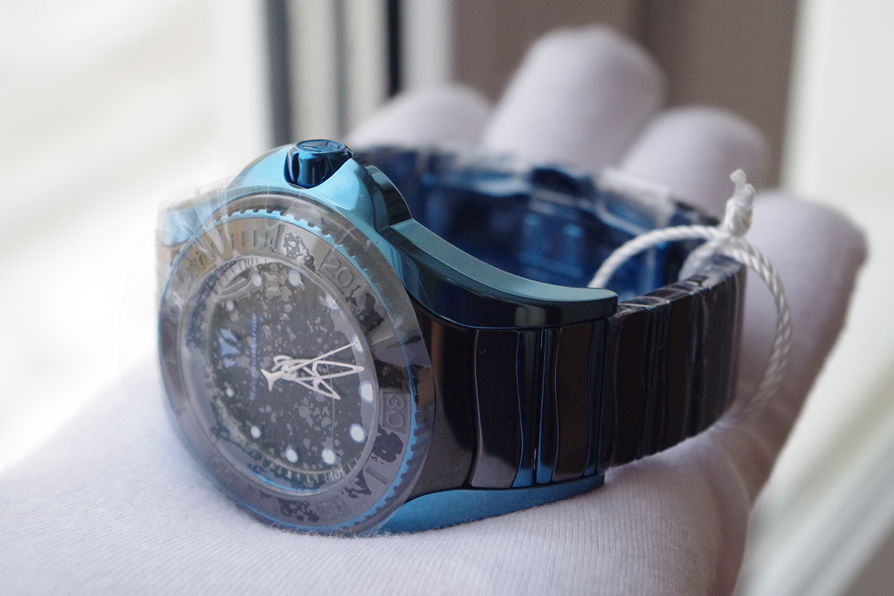 Cruise Blue Manta. Керамический безель вращается в одном направлении. Функция индикации заряда (EOL). Заводная головка с защитой. Браслет с раскладывающейся стальной застежкой.