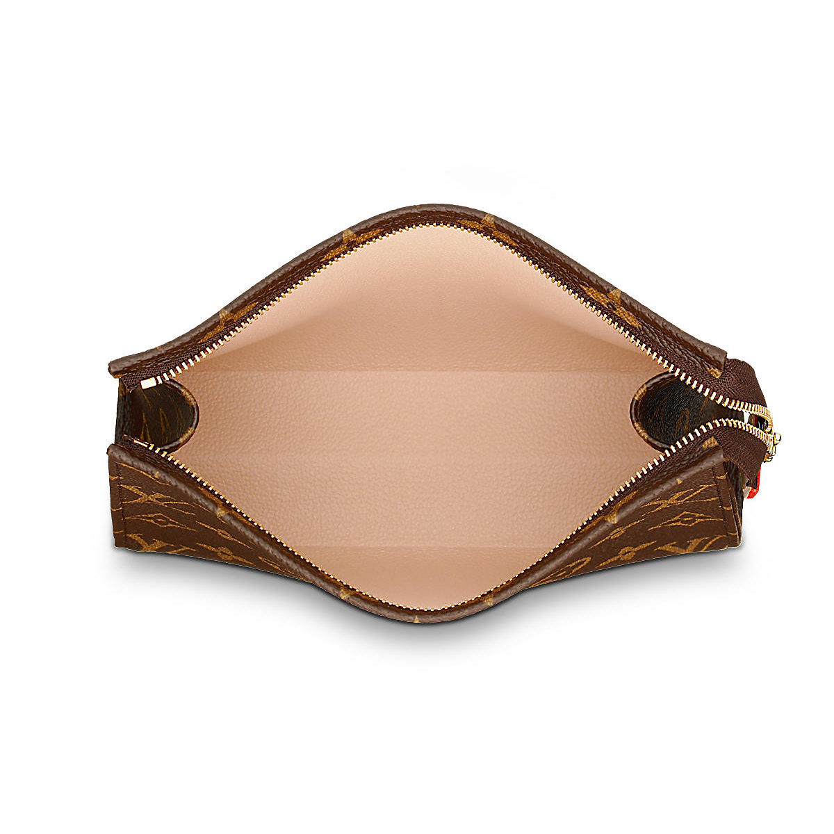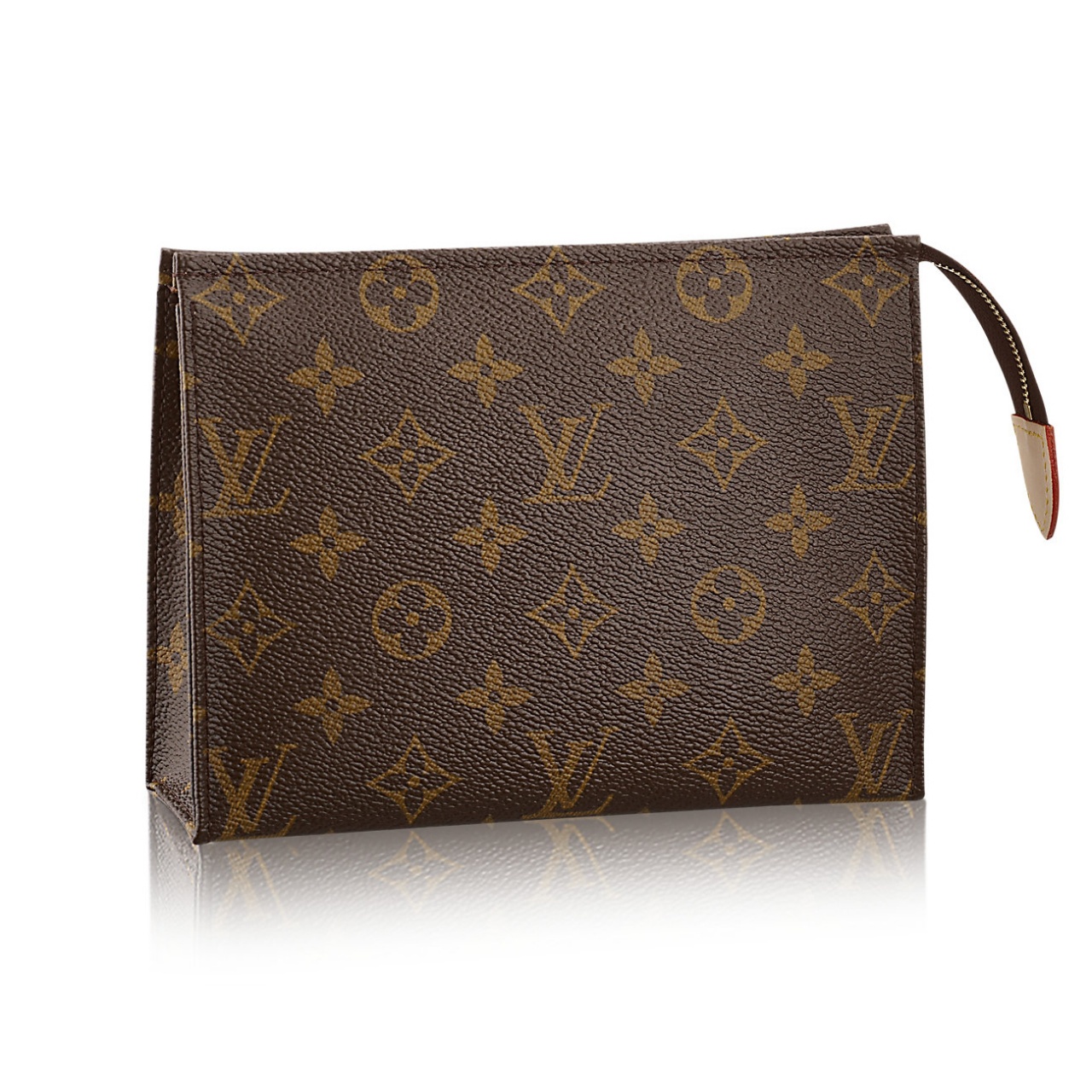 "Практичный несессер из канвы Monogram с кожаной отделкой. Можно использовать как великолепный аксессуар для путешествий или как элегантный клатч, отличающийся знаковым фирменным дизайном."