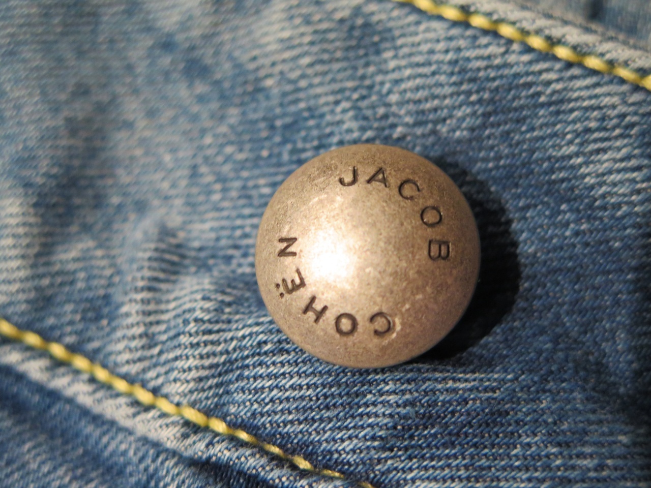 Сзади на правом бедре джинсы имеют фирменный ярлык из кожи пони с логотипом марки Jасоb Соhеn.